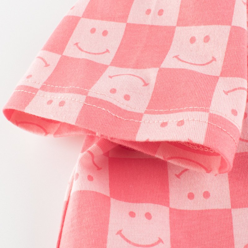 Children Kids Toddlers Fashion Girls Short Sleeve Smiley Plaid Print T-Shirt