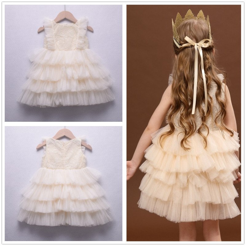 Children Kids Toddlers Fashion Girls Sleeveless Solid Color Mesh Princess Dress