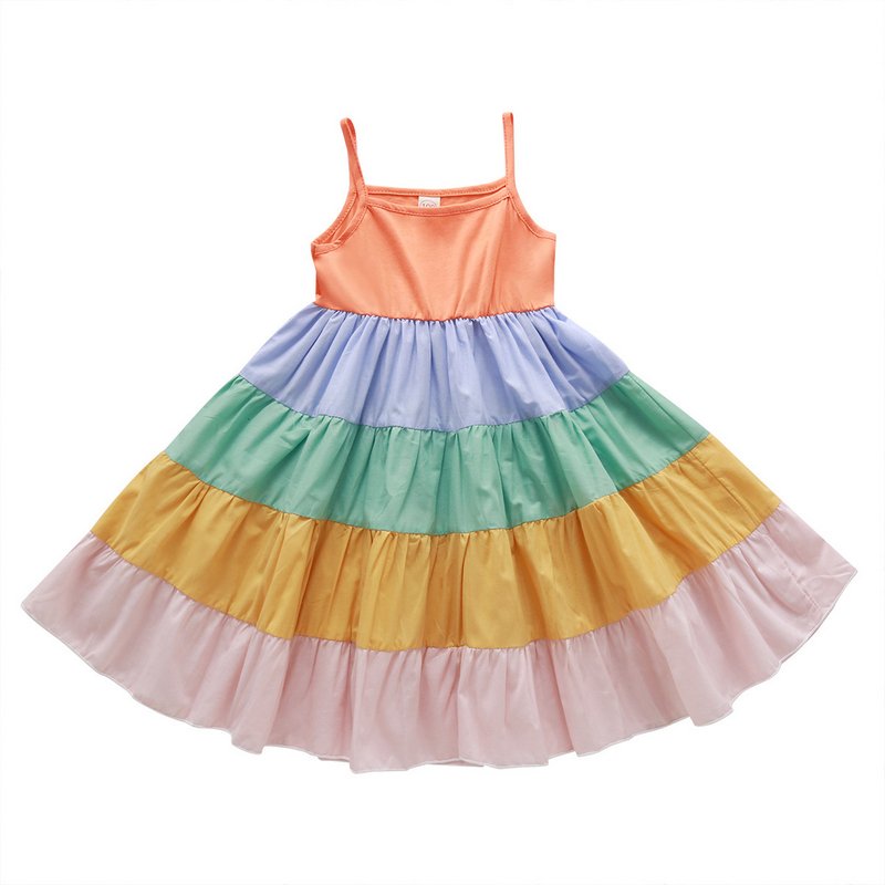 Children Kids Toddlers Fashion Girls Suspender Multicolored Rainbow Dress
