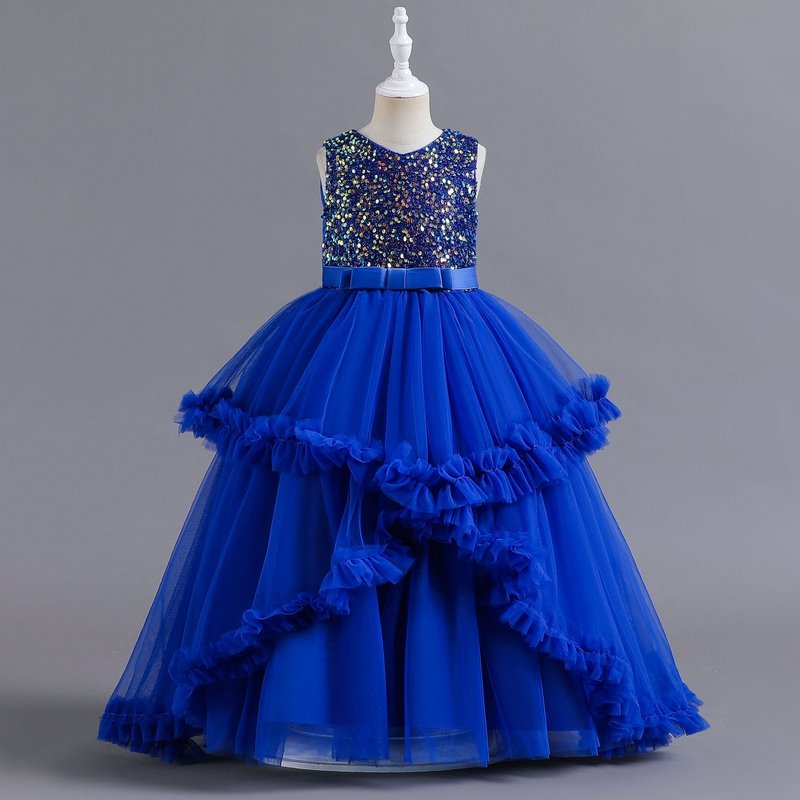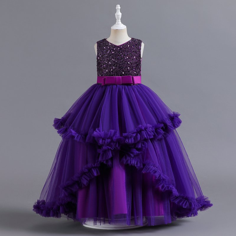 Children Kids Toddlers Girls Birthday Party Performance Princess Long Irregular Mesh Dress