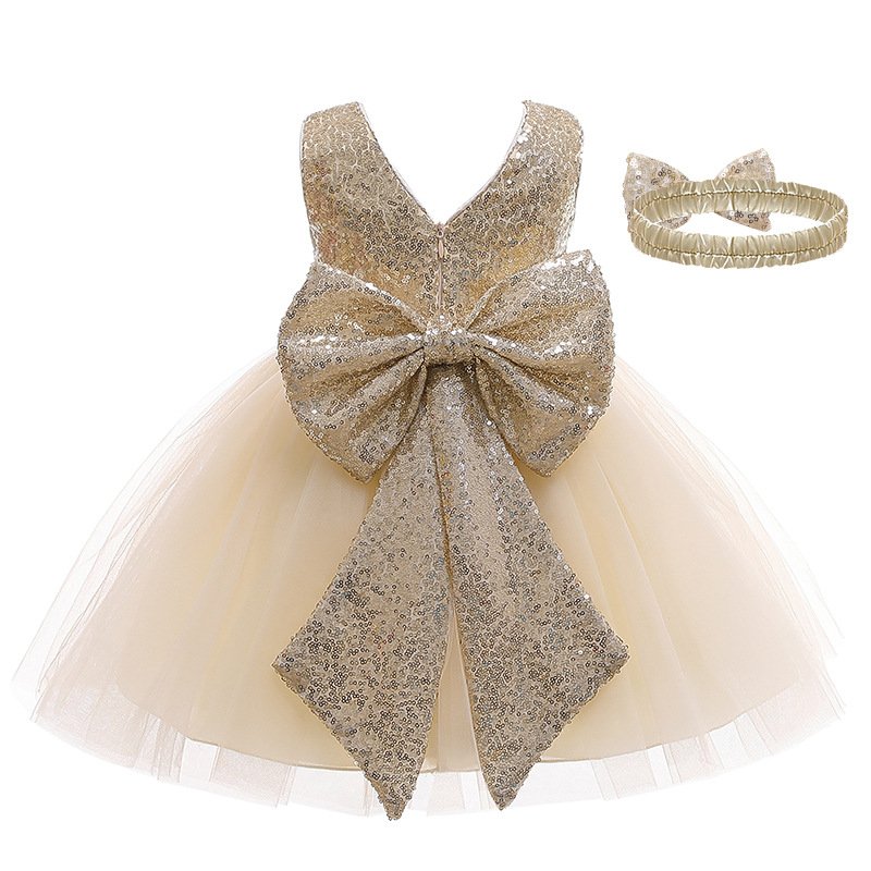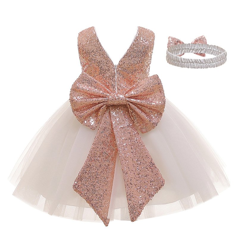 Children Kids Toddlers Girls Bow Lace Party Princess Sequin Mesh Dress And Headband