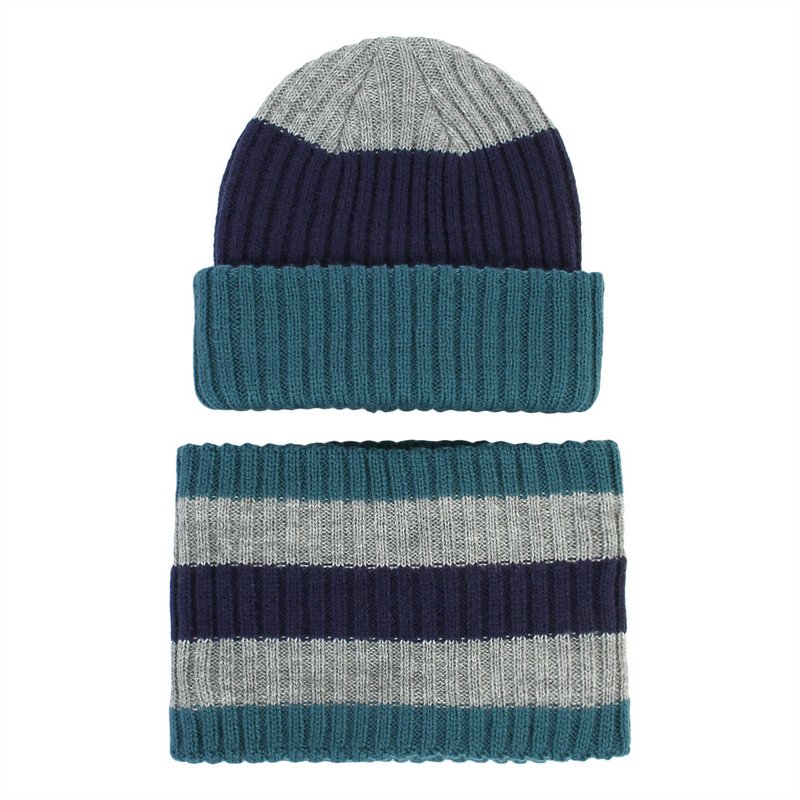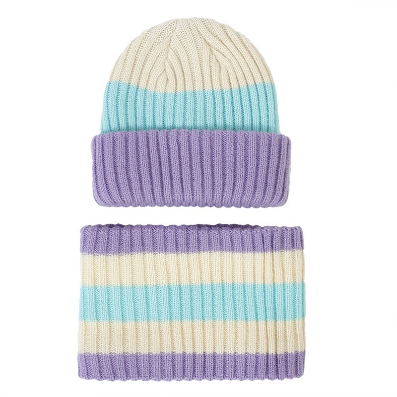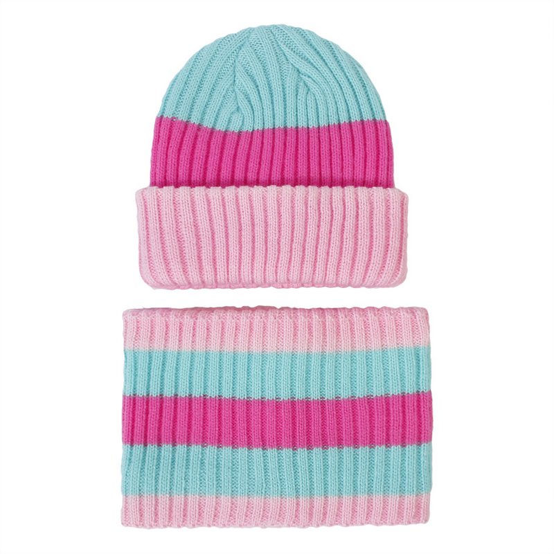 Children Kids Toddlers Girls Boys Stripe Knitted Cap Scarf Set