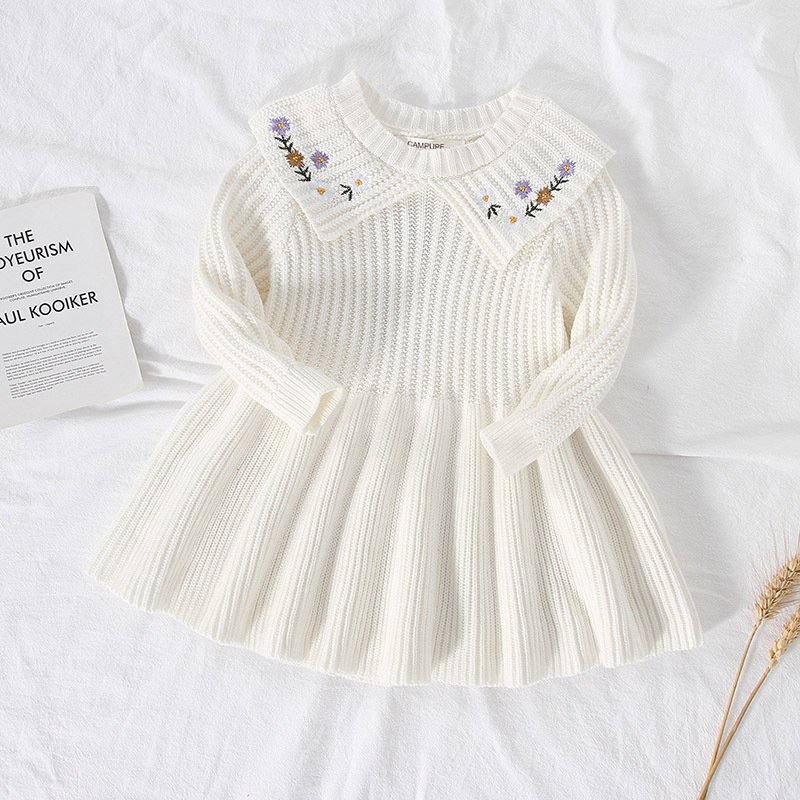 Children Kids Toddlers Girls Embroidered Long Sleeves Knitted Dress