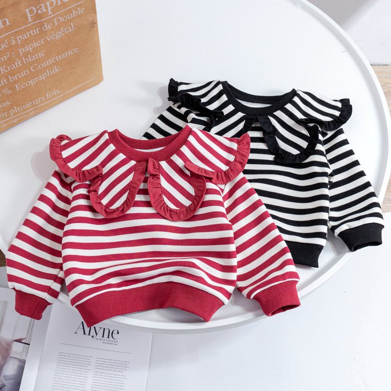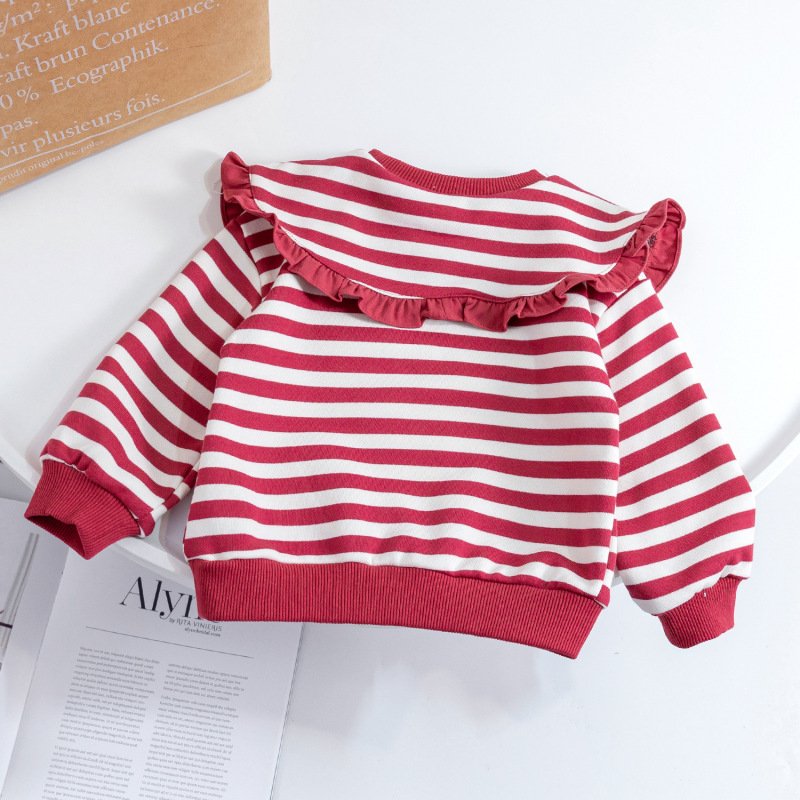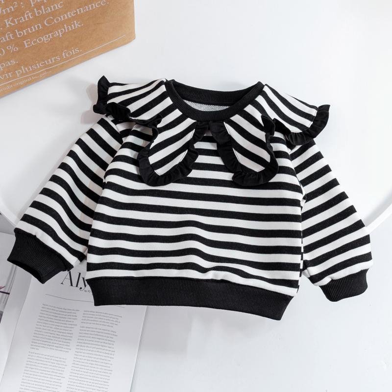 Children Kids Toddlers Girls Lapel Stripe Long Sleeve Sweatshirt