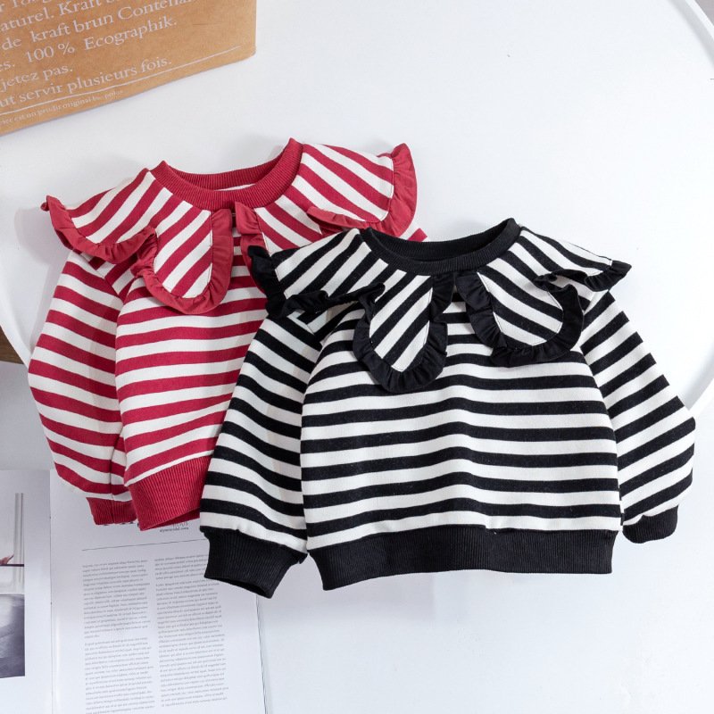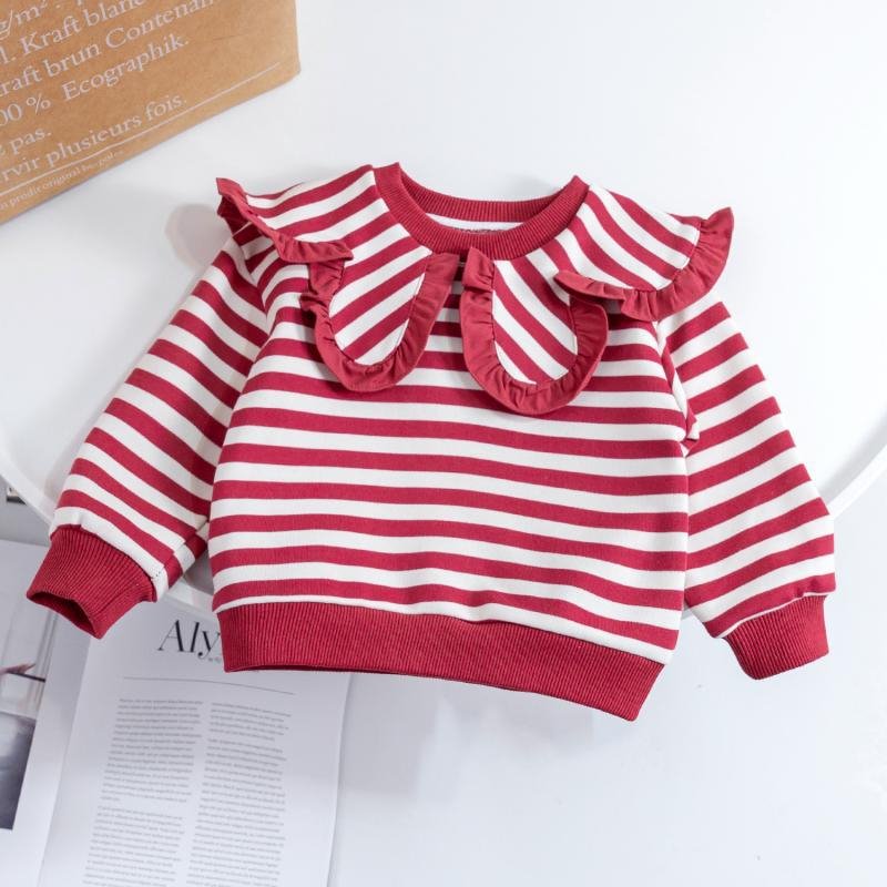 Children Kids Toddlers Girls Lapel Stripe Long Sleeve Sweatshirt