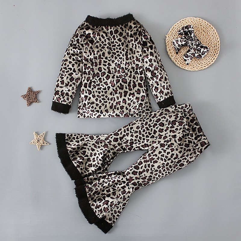Children Kids Toddlers Girls Leopard Long-Sleeved Top And Flared Pants 2pcs Set