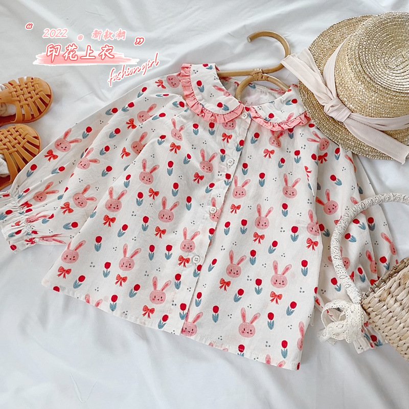 Children Kids Toddlers Girls Long-Sleeved Cute Rabbit Print Shirt