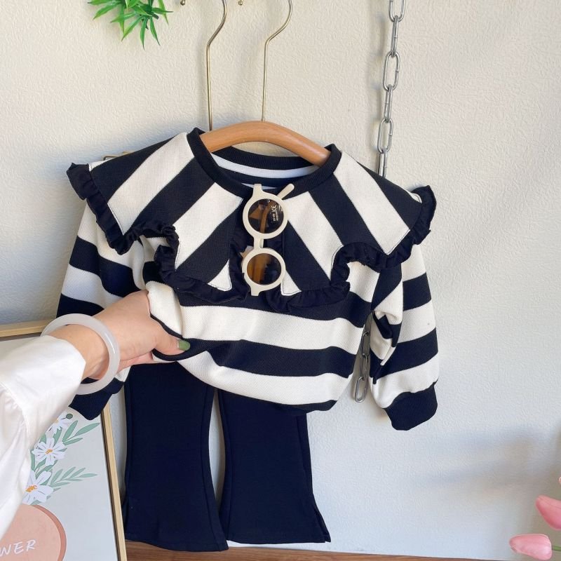Children Kids Toddlers Girls Long-Sleeved Stripes Top And Flared Pants 2pcs Set
