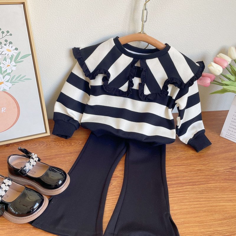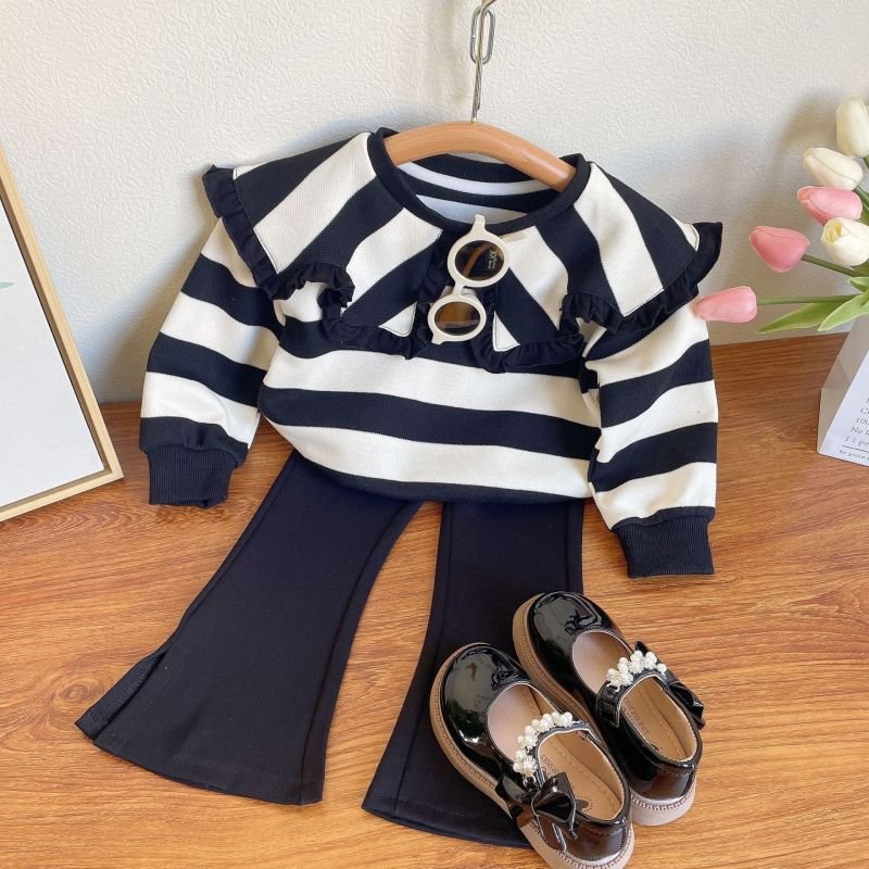 Children Kids Toddlers Girls Long-Sleeved Stripes Top And Flared Pants 2pcs Set