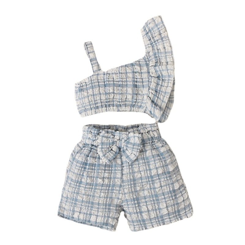 Children Kids Toddlers Girls Plaid Sleeveless Suspender Top And Shorts 2pcs Set