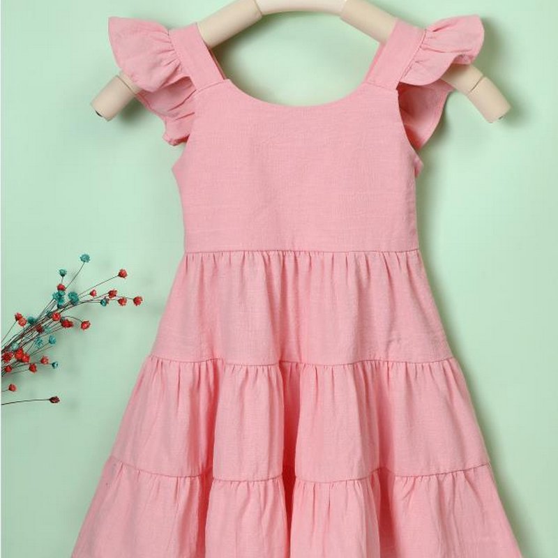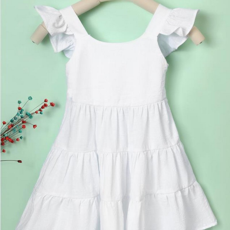 Children Kids Toddlers Girls Pure Color Ruffle Sleeve Dress