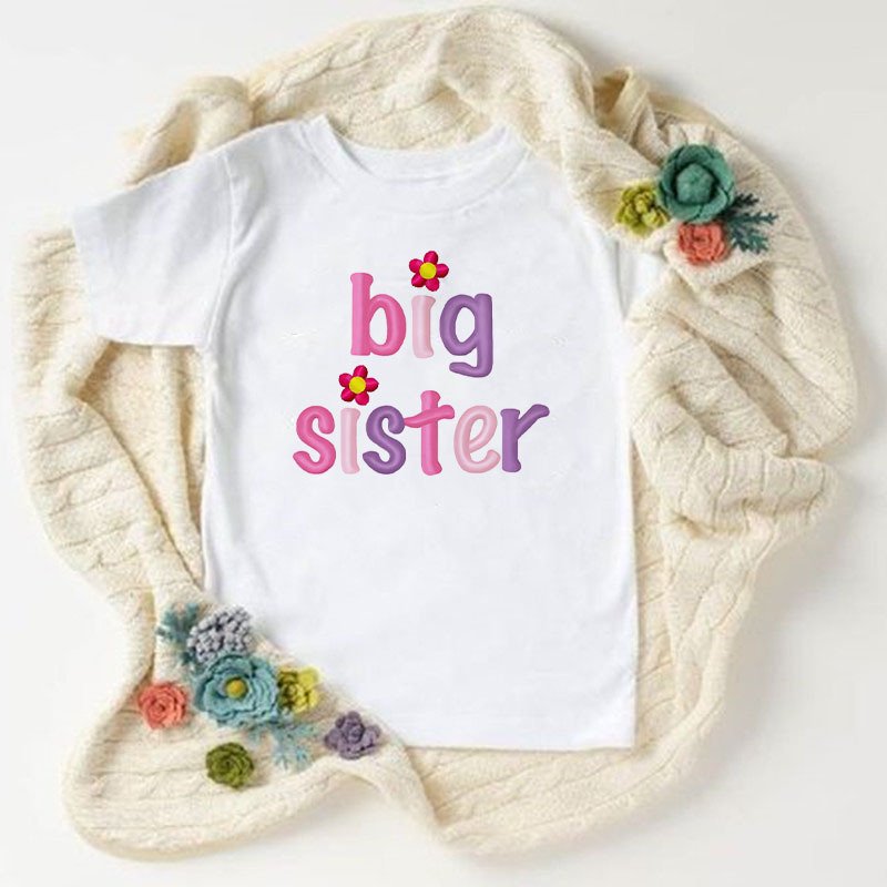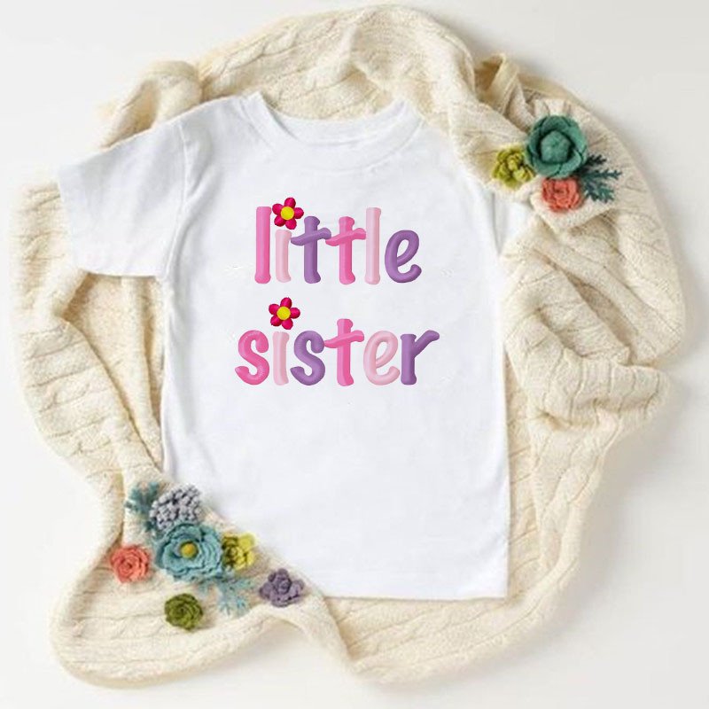 Children Kids Toddlers Girls Short Sleeves Sister Print T-Shirt