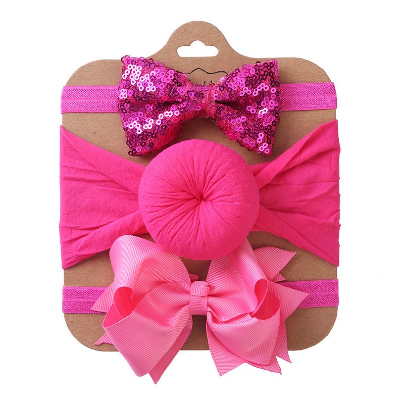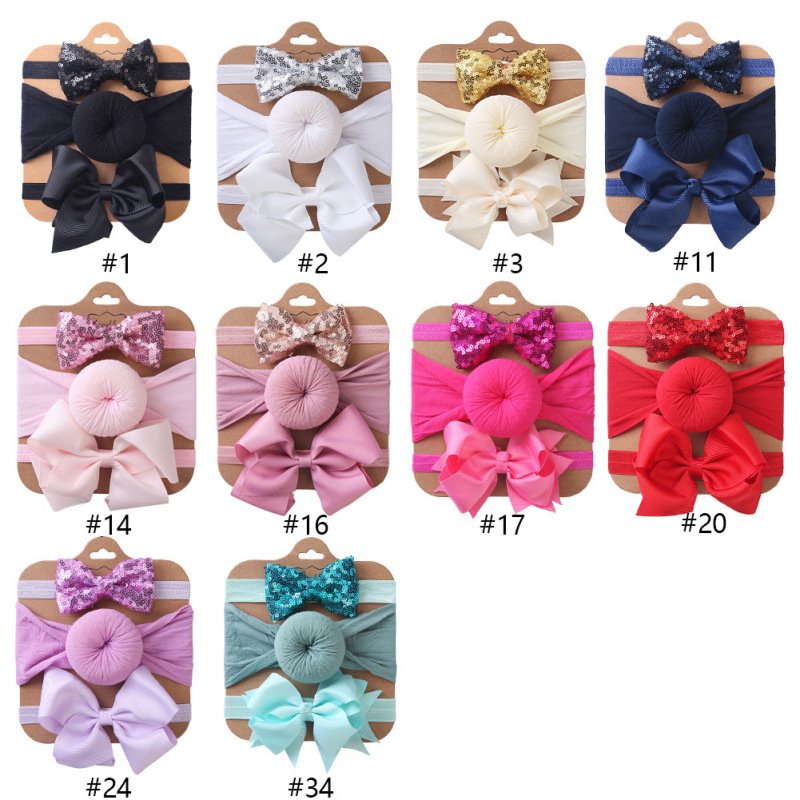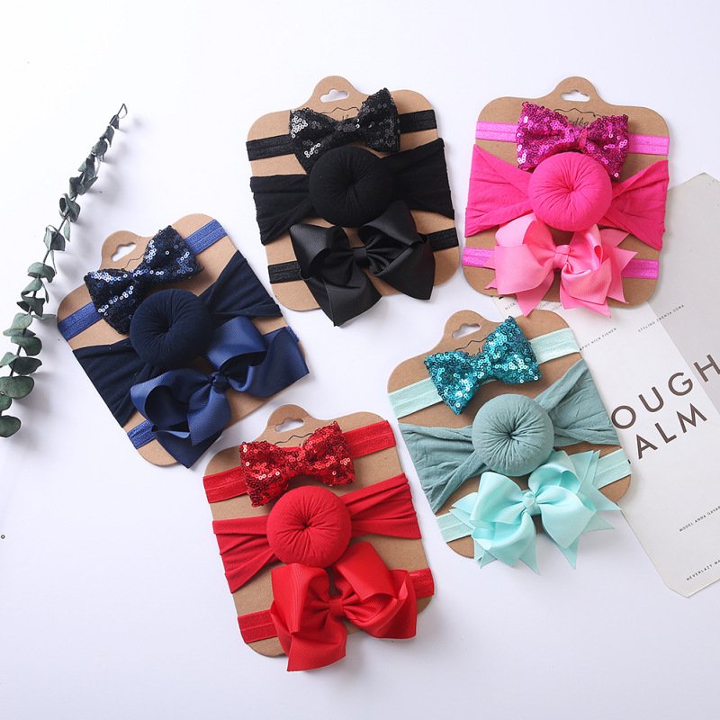 Children Kids Toddlers Printed Bowknot Nylon Headband Set