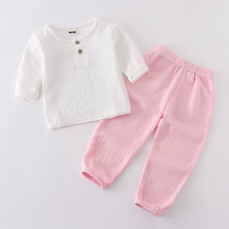 • White Long – Sleeved Pink Trousers – 1Y (80)