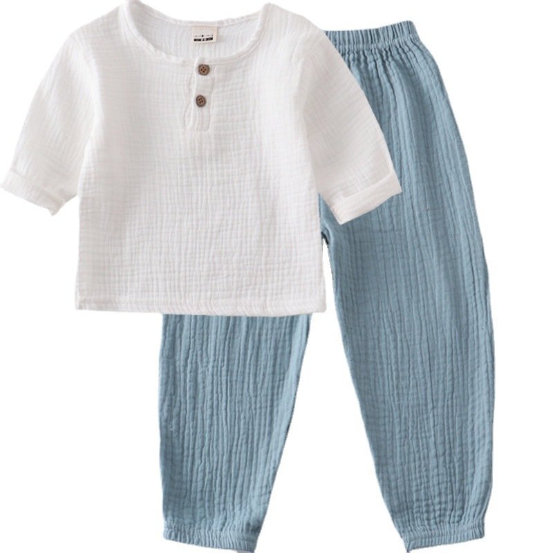 • White Long – Sleeved Gray Trousers – 1Y (80)