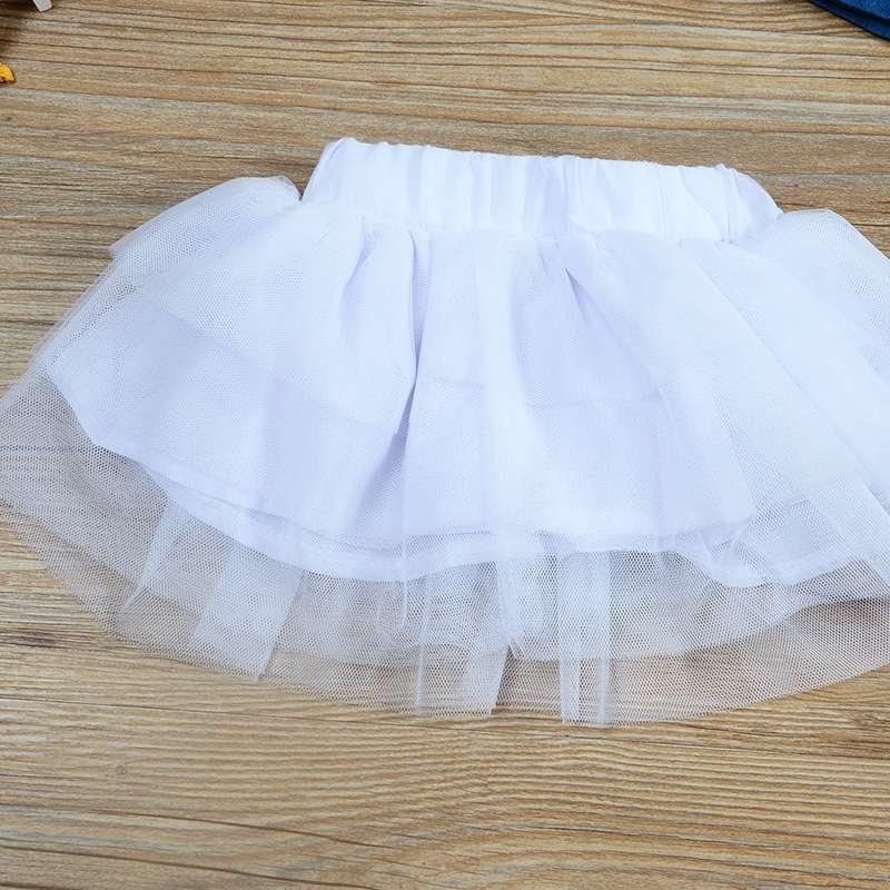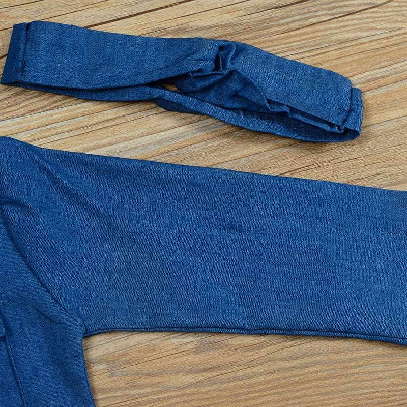 Children Solid Color Denim Mesh Gauze Three-piece Set