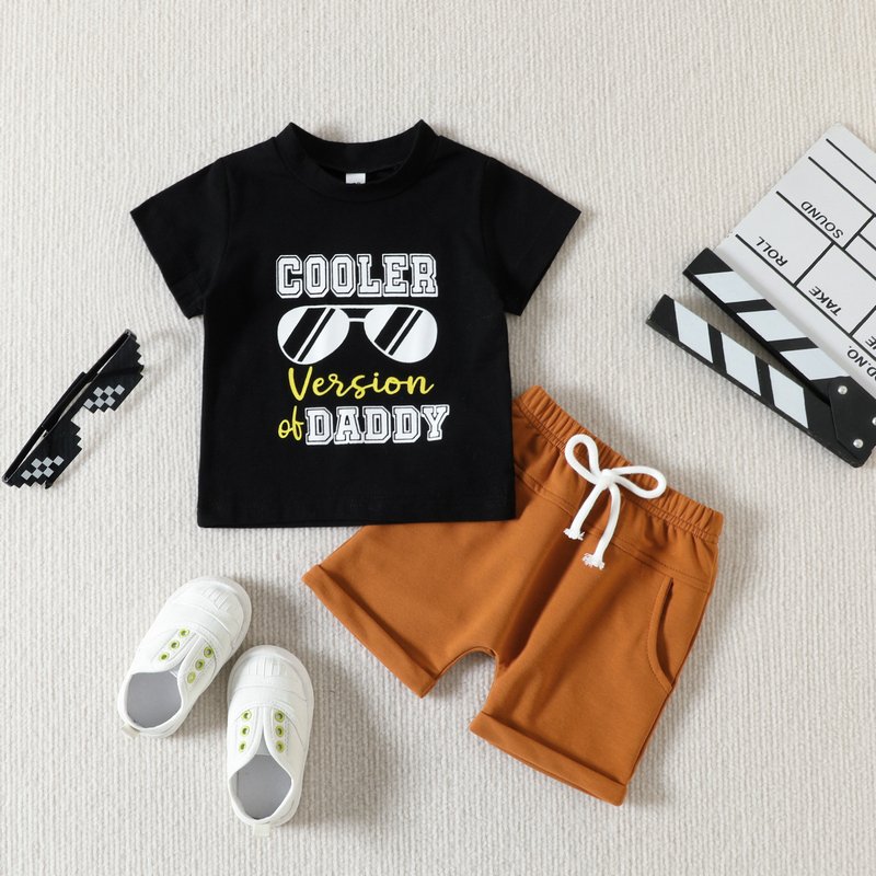 Children Summer Boys Fashion Letter Print Two-Piece Set