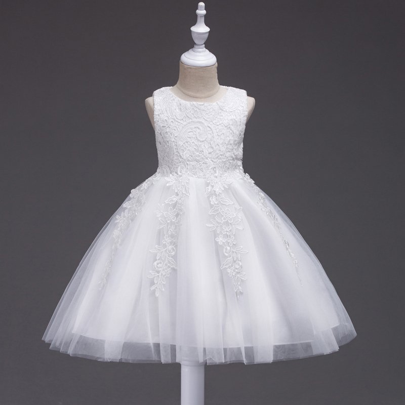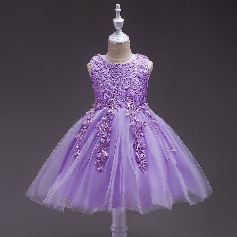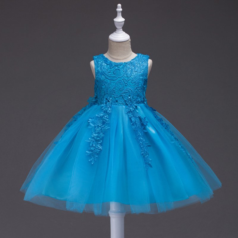 Children Wear Elegant Girl Solid Color Lace Mesh Party Princess Dress