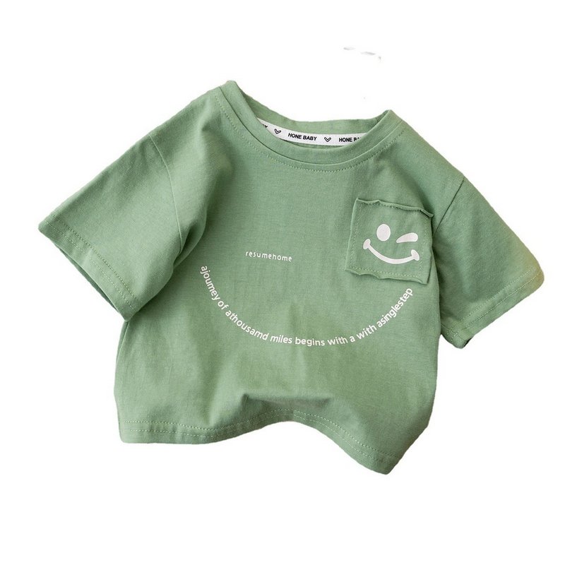 Children’s Cotton Solid Color Printed Round Neck Short-Sleeve Loose T-Shirt