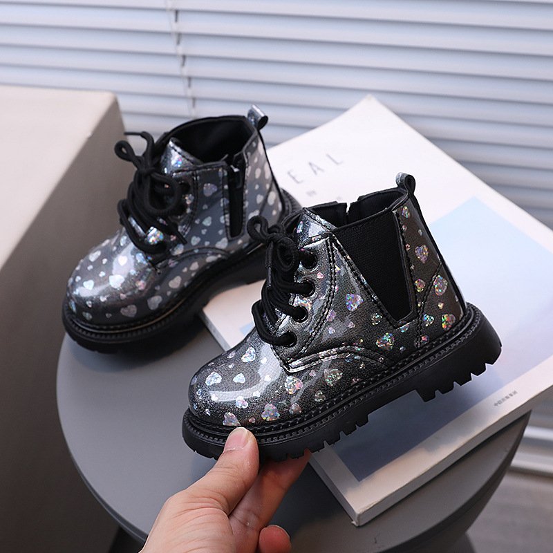 Children’s Fashion Autumn And Winter Patent Leather Lace-Up Boots
