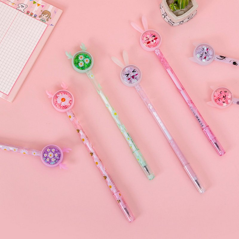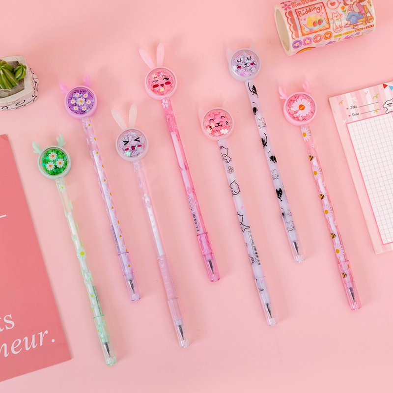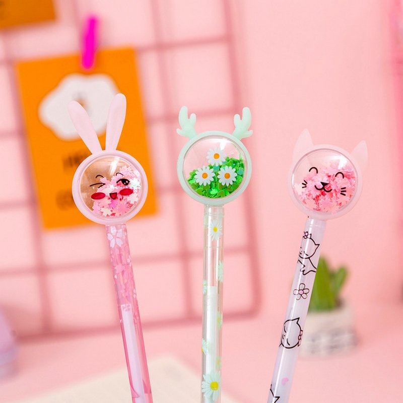 Creative Cartoon Rabbit Reindeer Butterfly Glitter Powder Transparent Rod Student Stationery Gel Pen