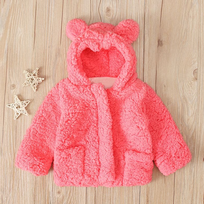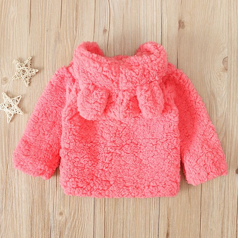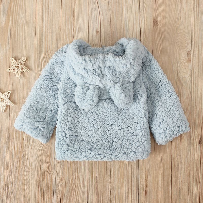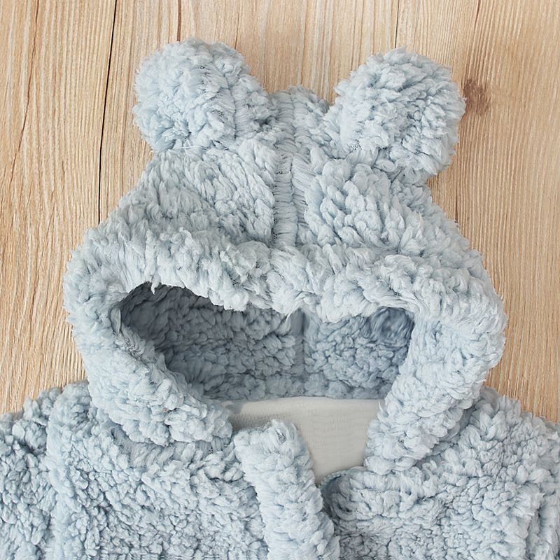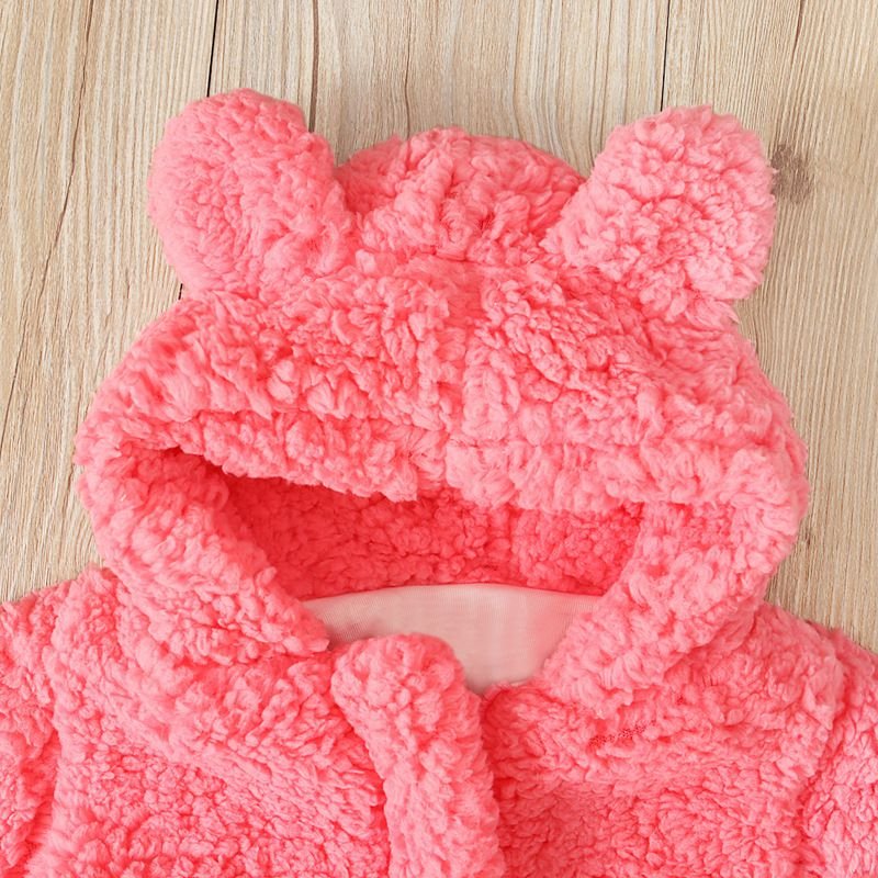 Cute Baby Pure Color Plush Bear Pattern Warm Outwear