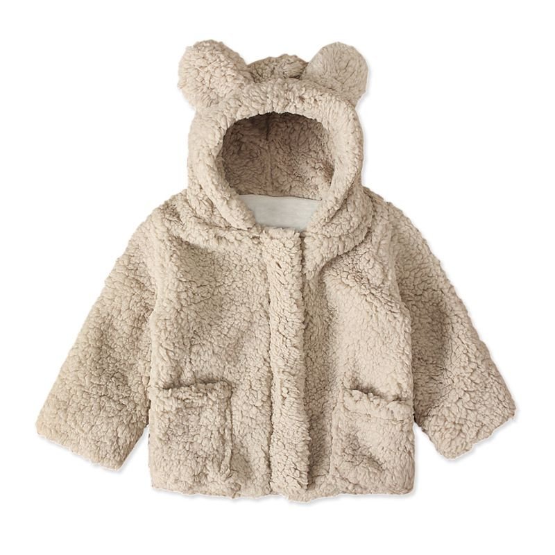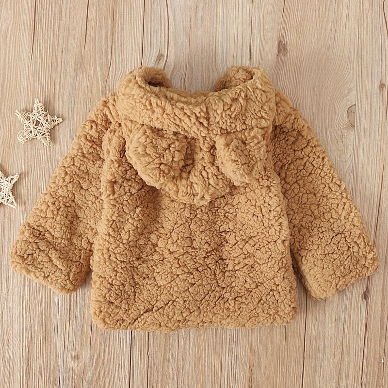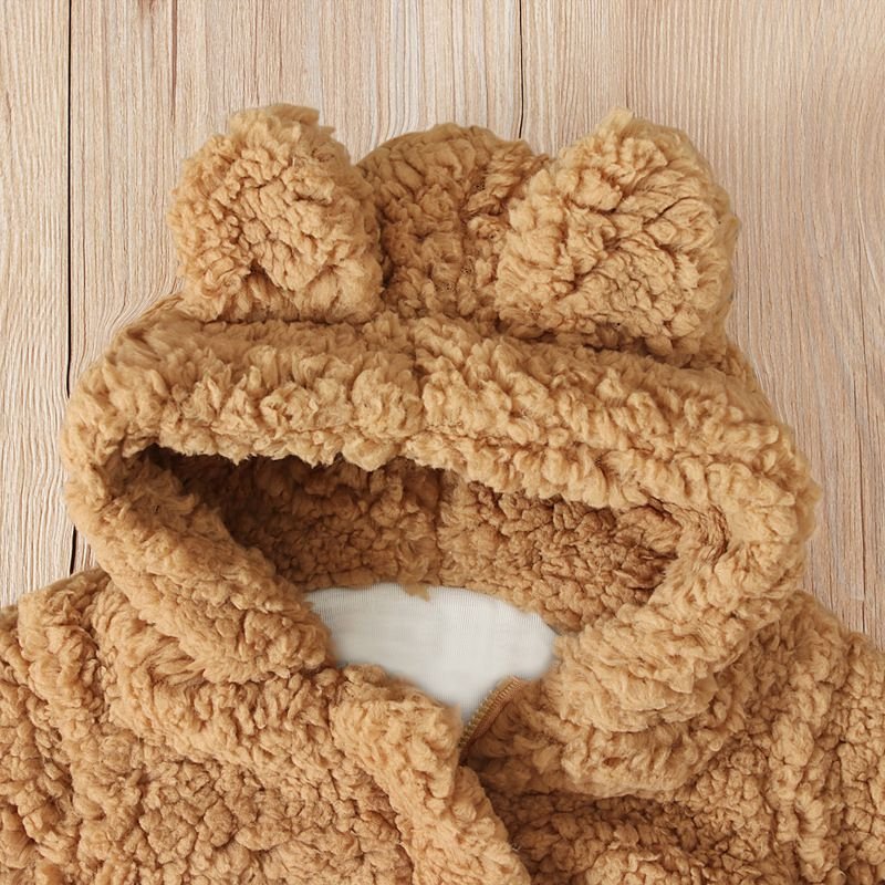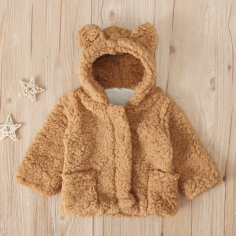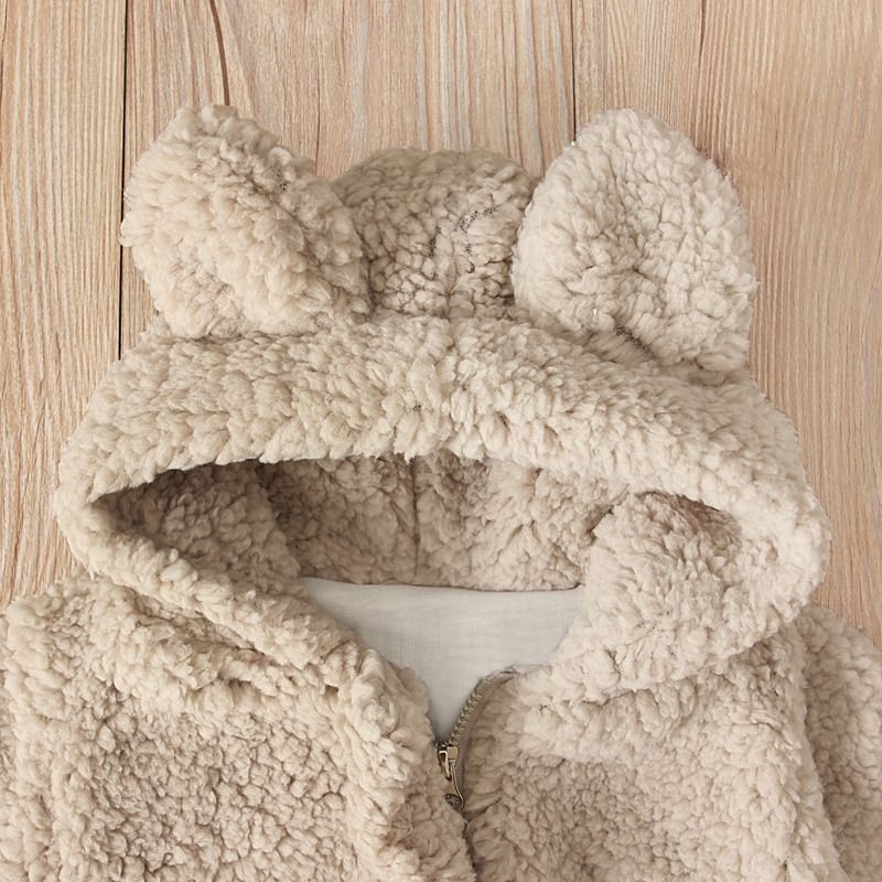 Cute Baby Pure Color Plush Bear Pattern Warm Outwear
