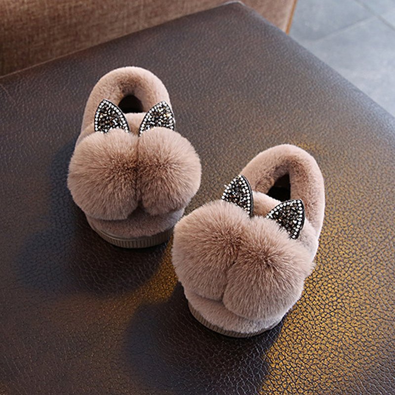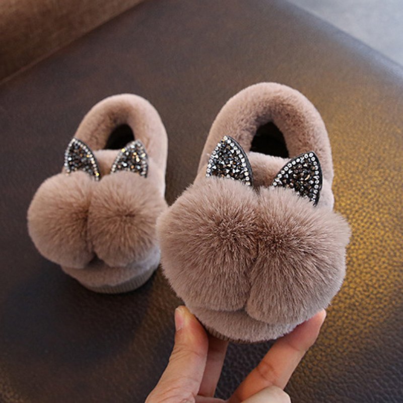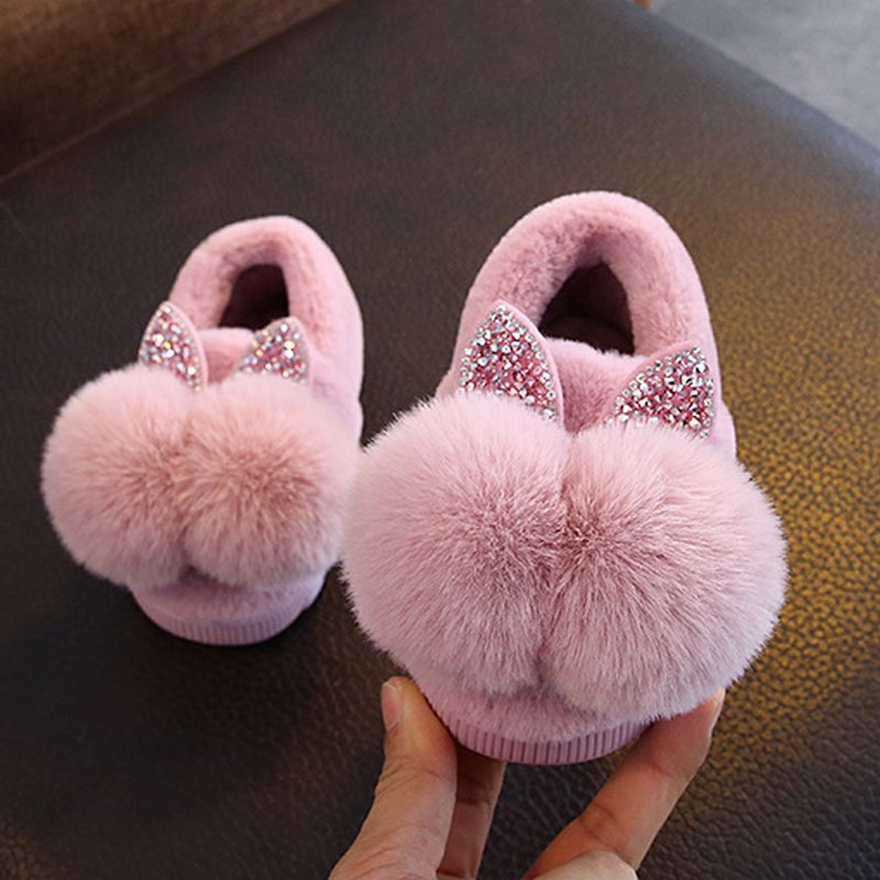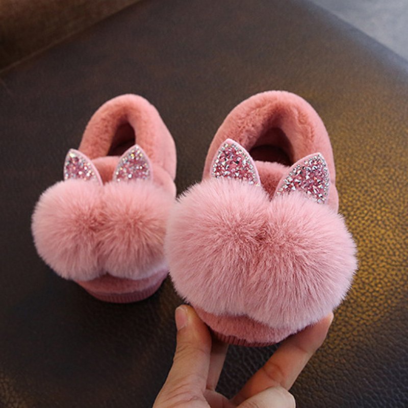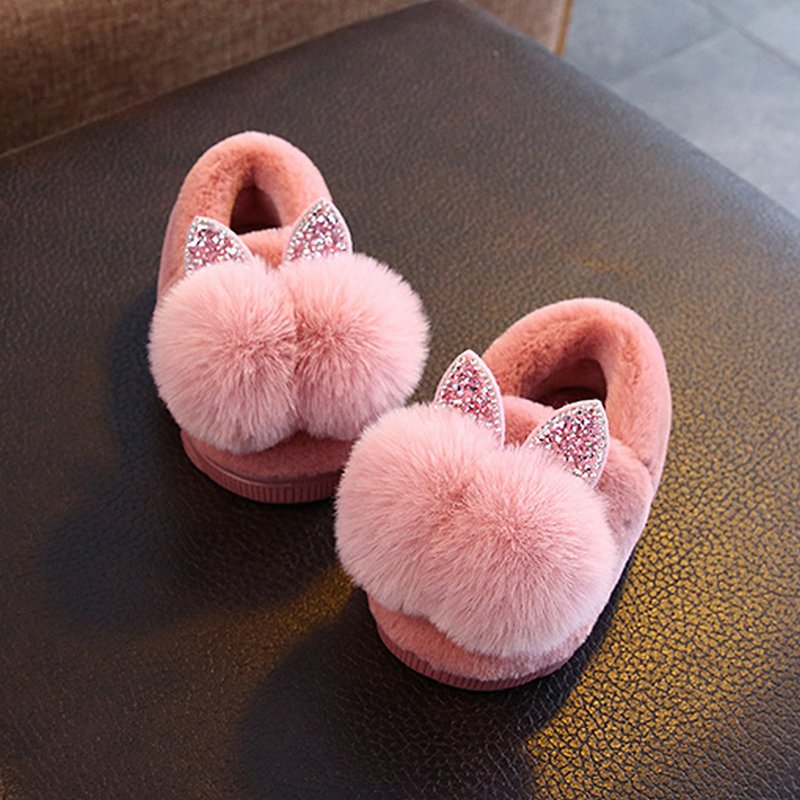 Cute Children Pompom Decor Warm Soft Bottom Non-slip Slippers