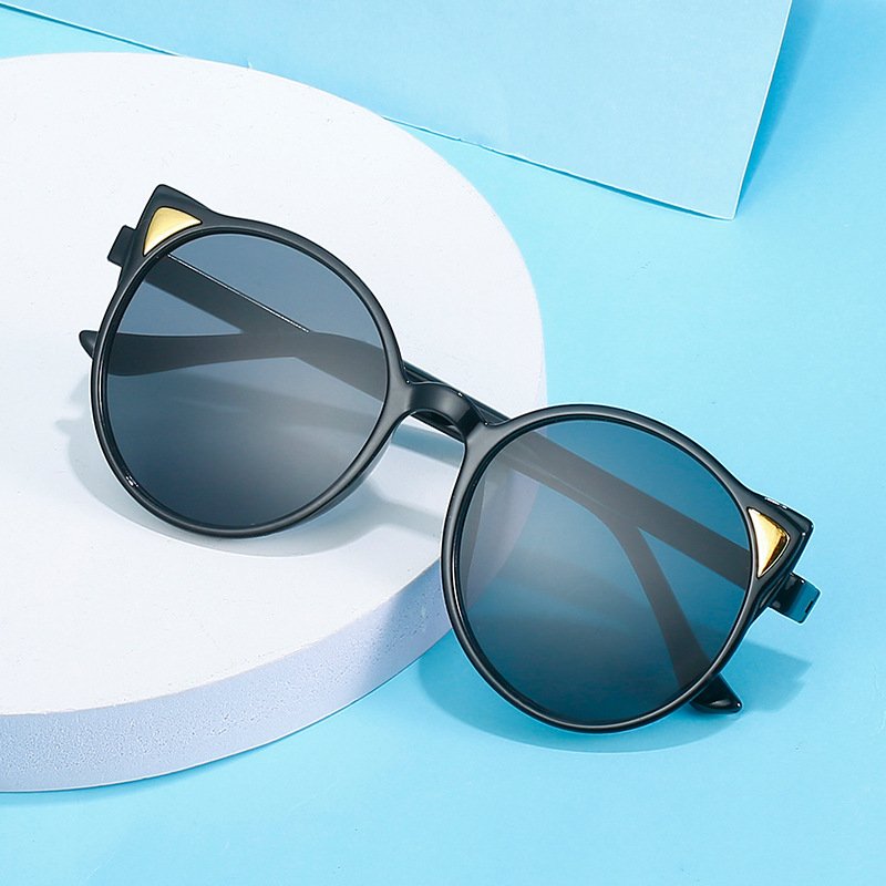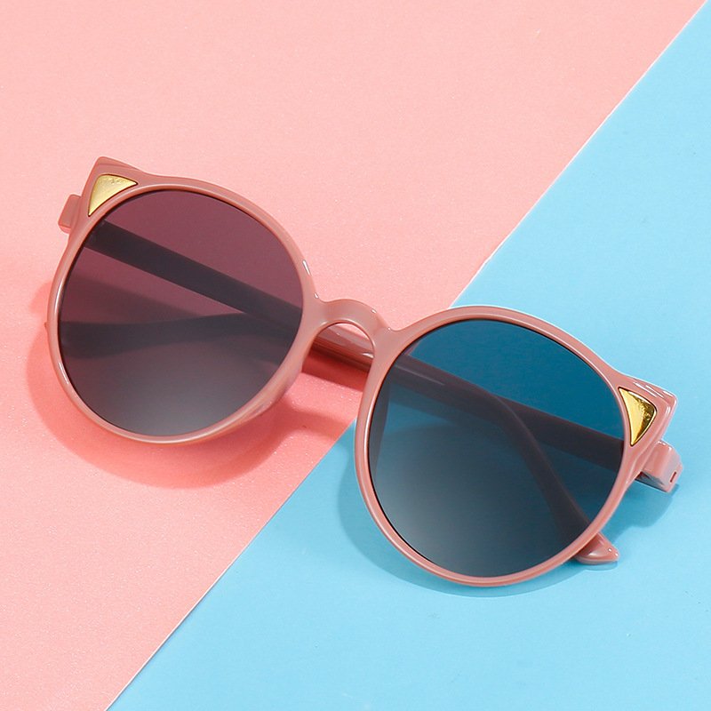 Cute Kids Boys And Girls Round Frame Cat Ears Children Outdoor Shade Sunglasses