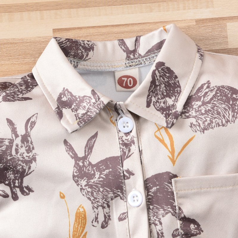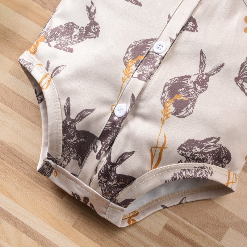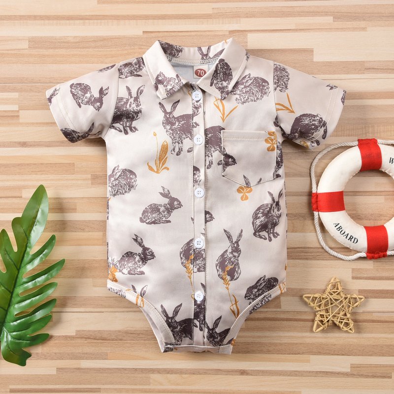 Easter Baby Boys Cute Cartoon Rabbit Lapel Single-breasted Short Sleeve Romper