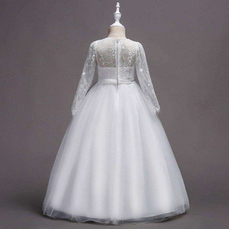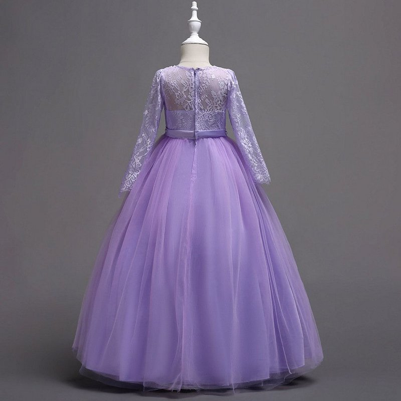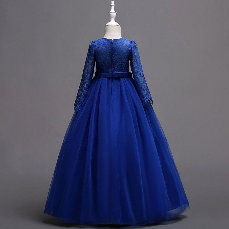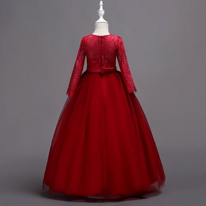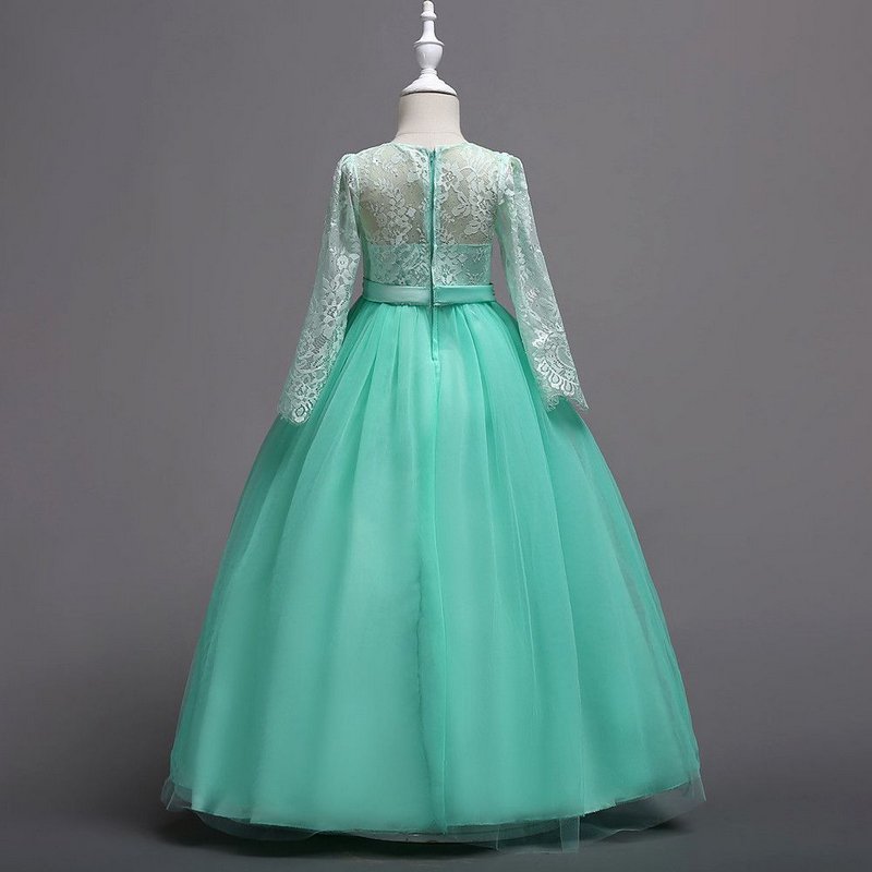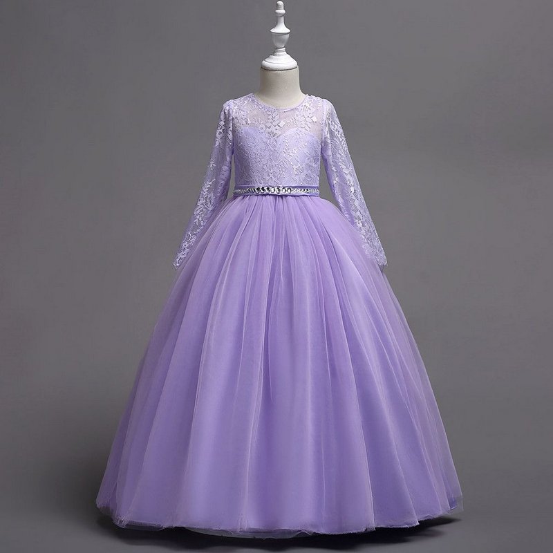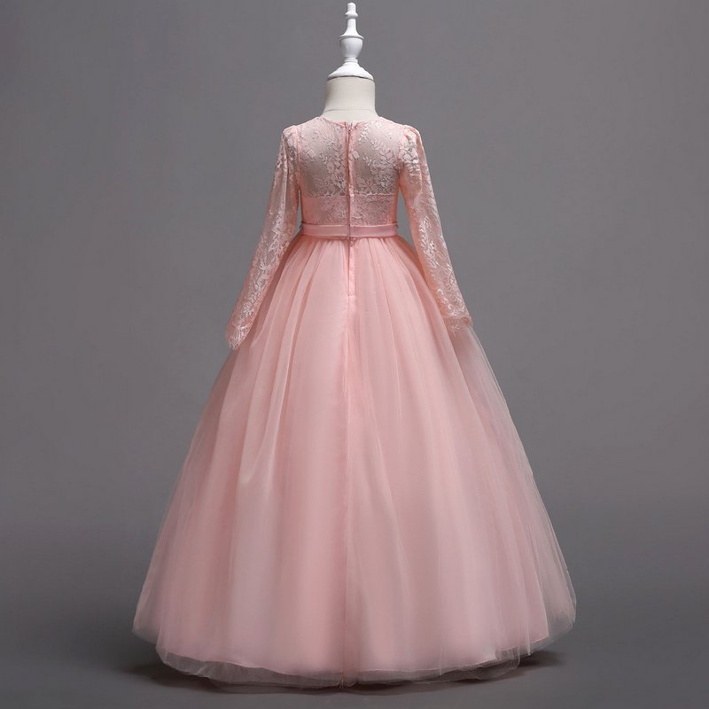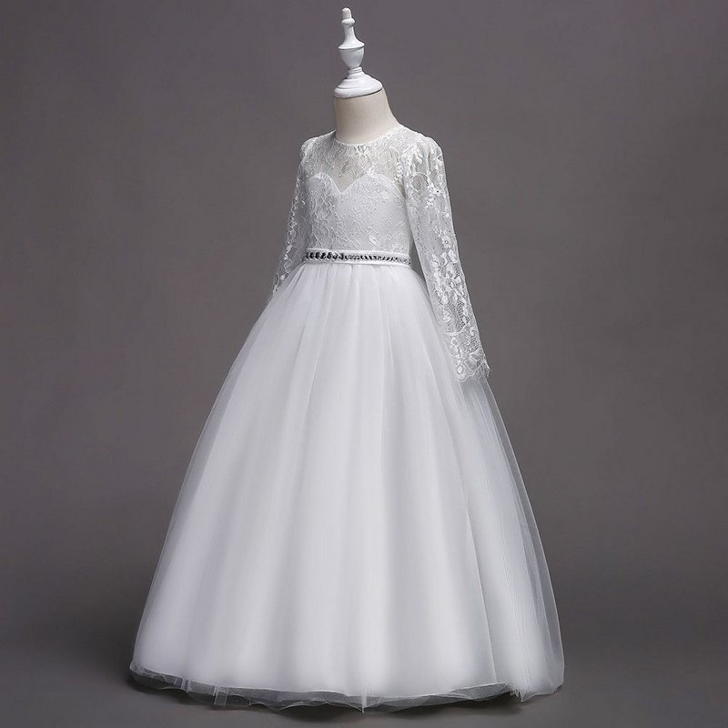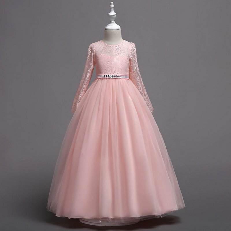Elegant Girl Lace Long Sleeves Rhinestone Design Long Princess Dress