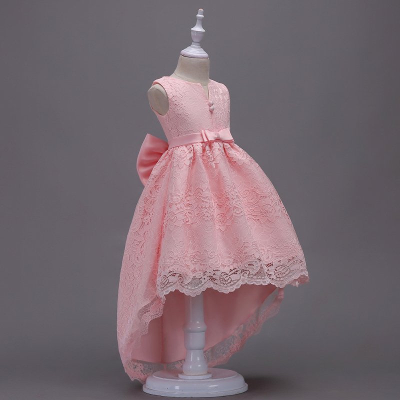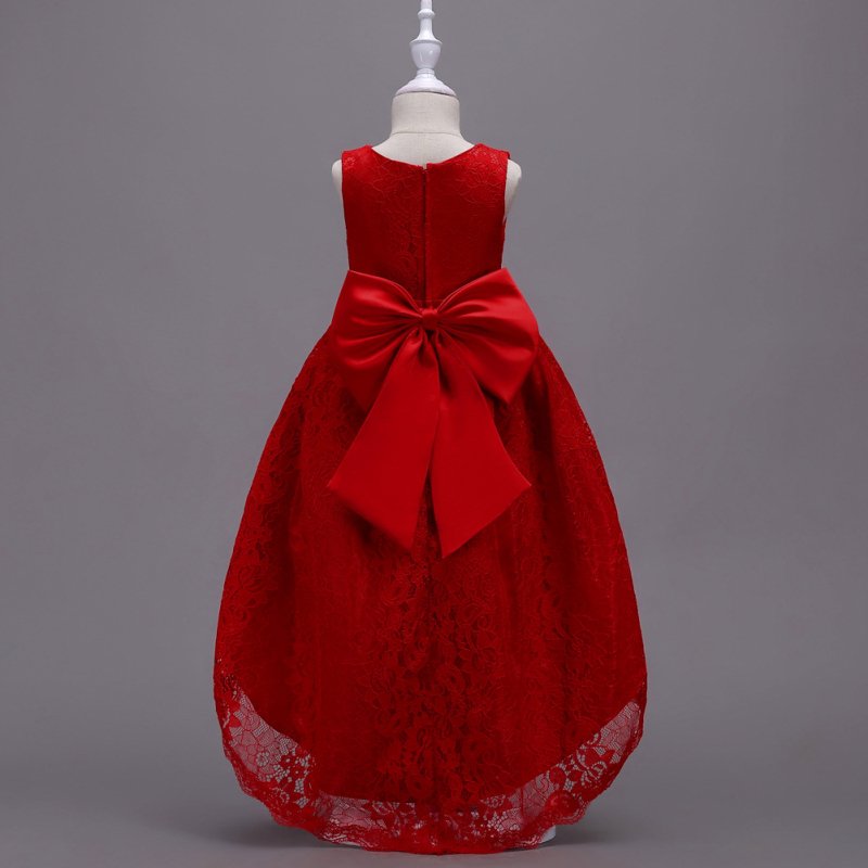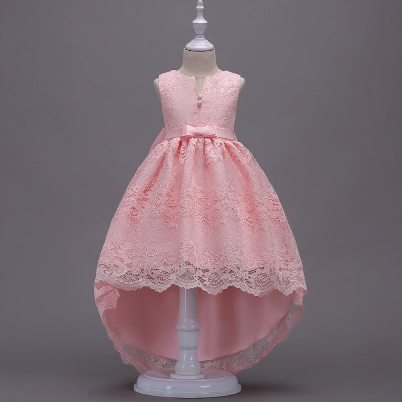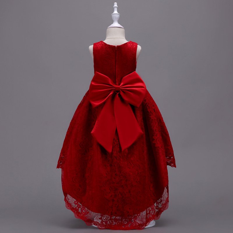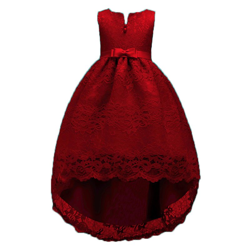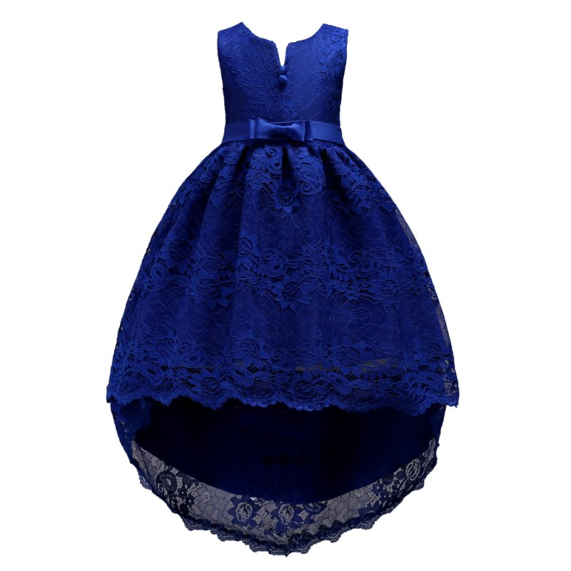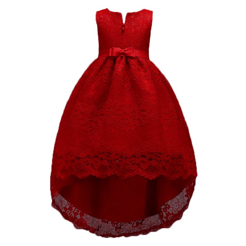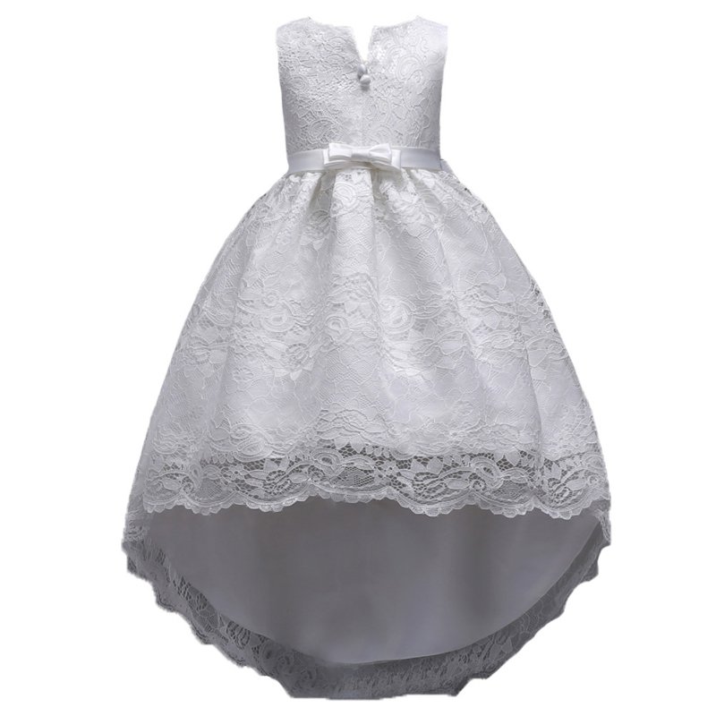 Elegant Girls Solid Color Lace Design Party Wedding Trailing Dress