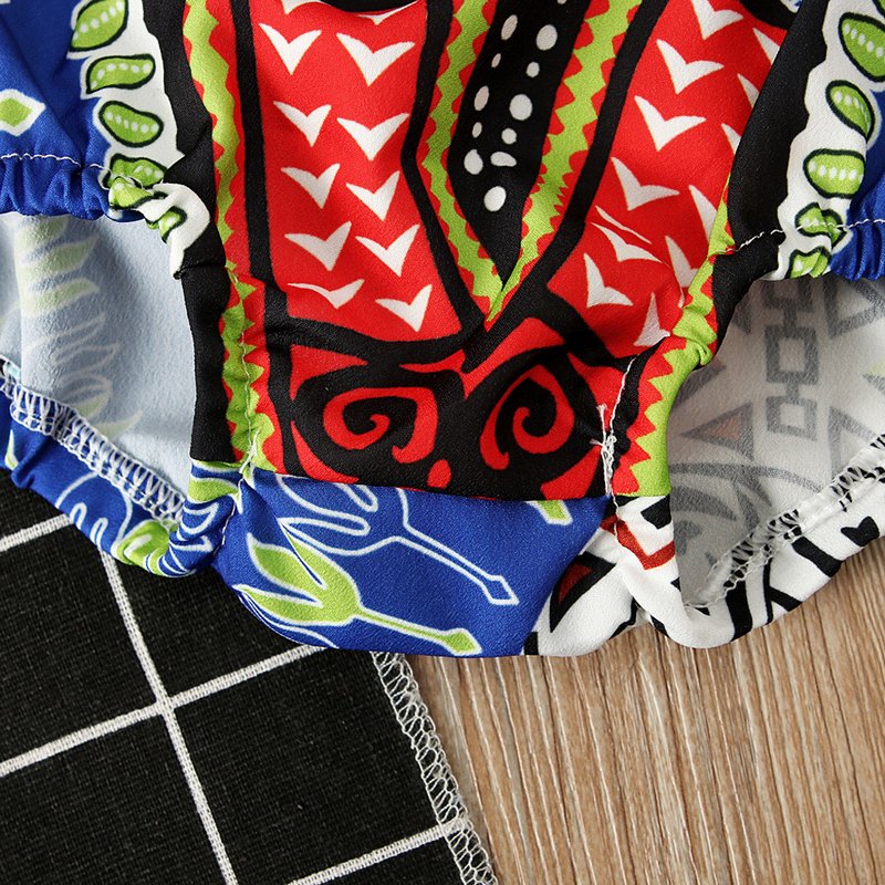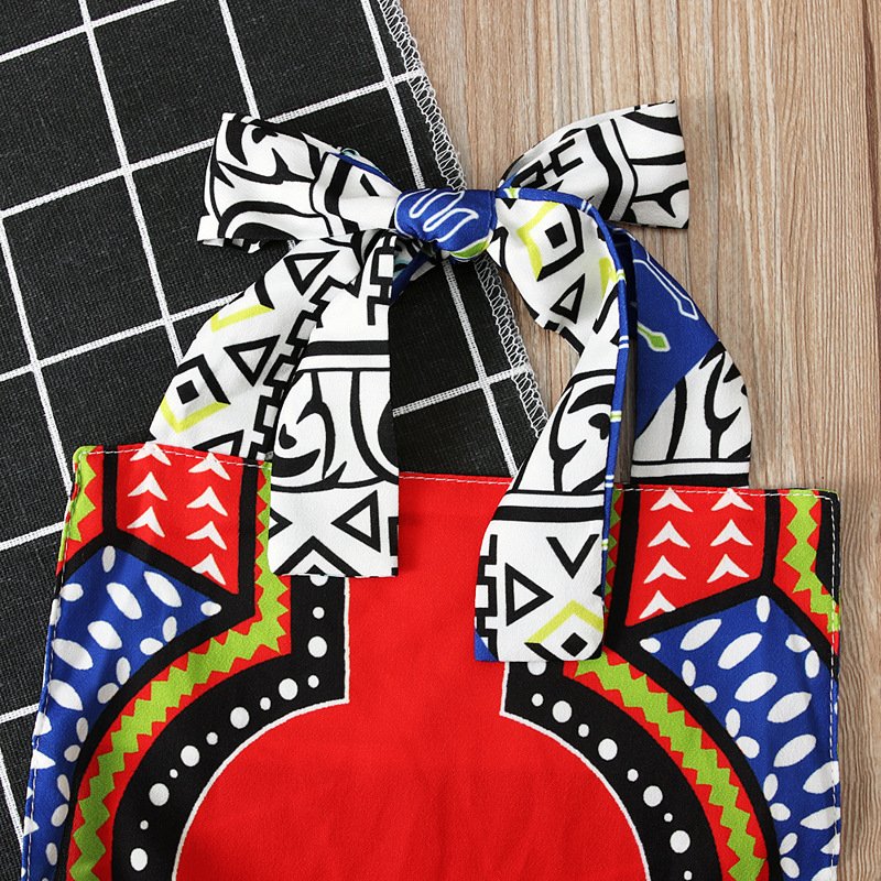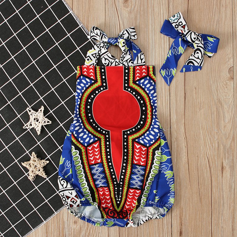 Ethnic Style Sleeveless Printed Halterneck Romper With Headband Set