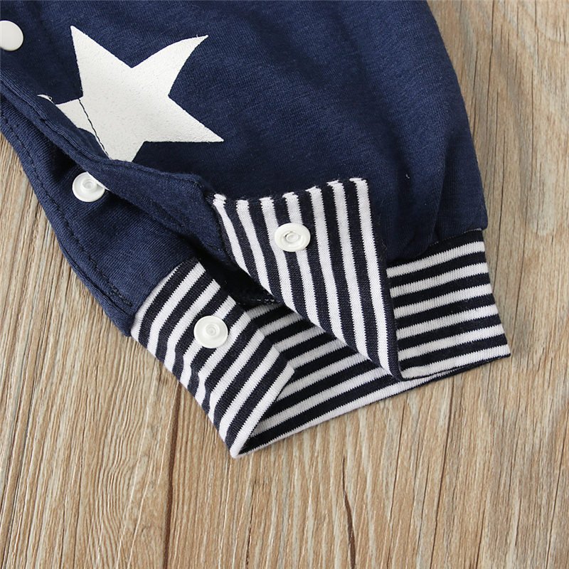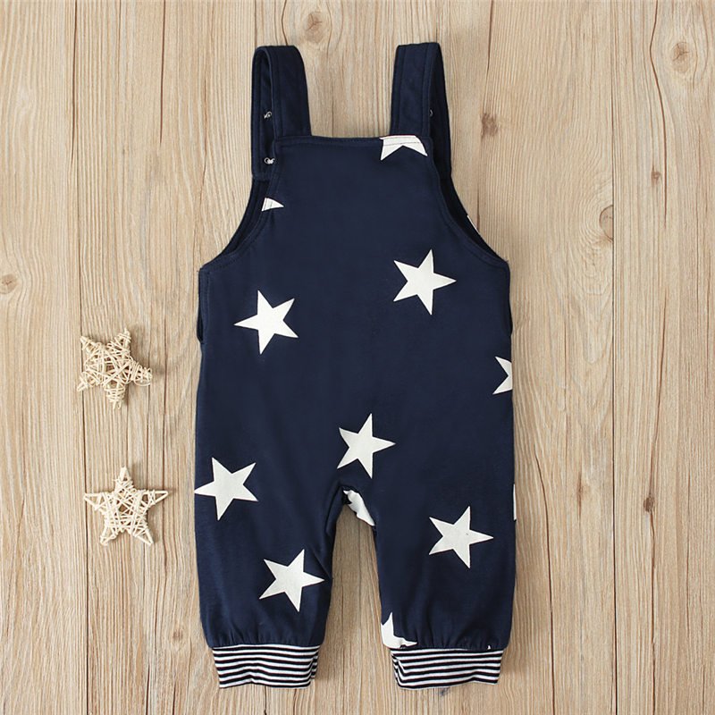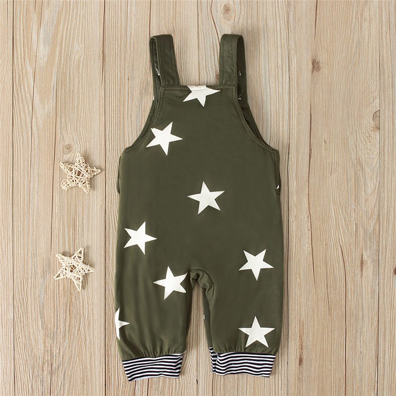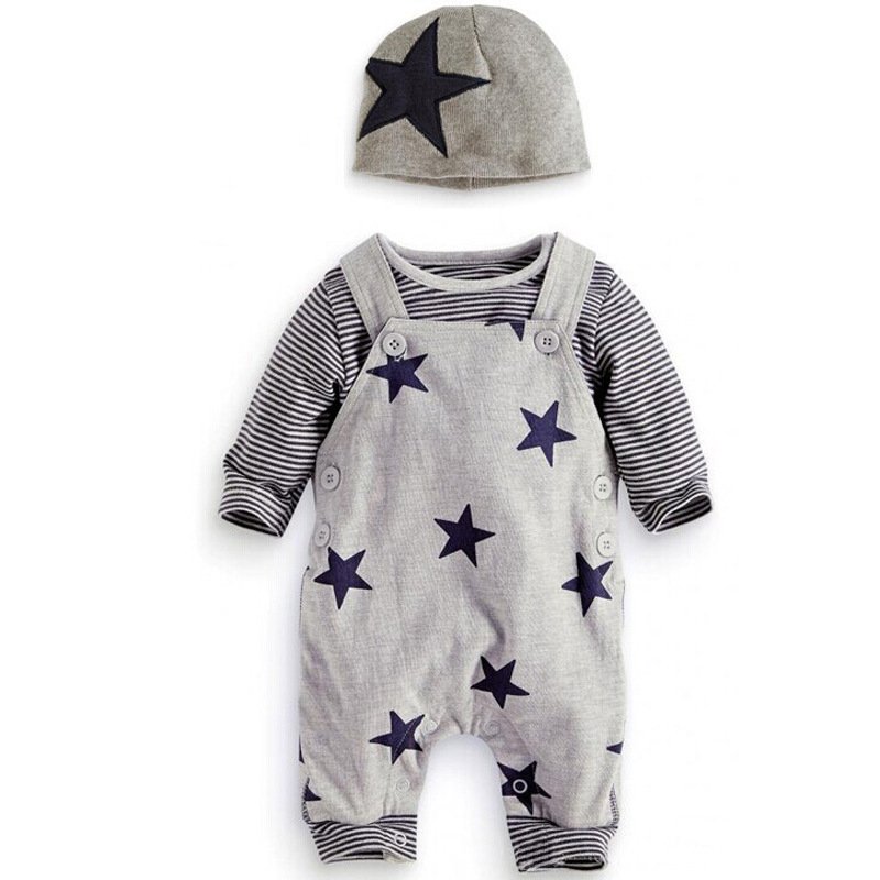 Fashion Baby Striped Long-Sleeved Top And Star Print Overalls With Hat