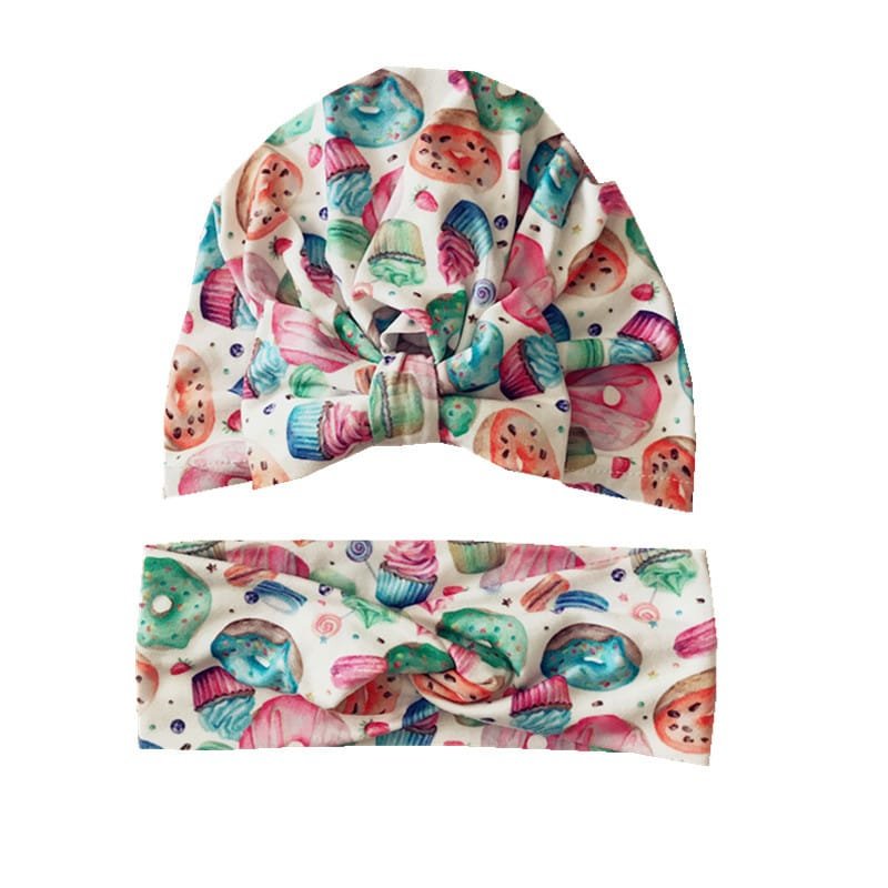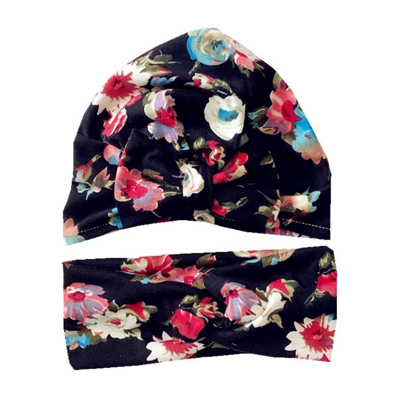 Fashion Flower Pattern Bowknot Decor Mother Headband And Baby Cap Set
