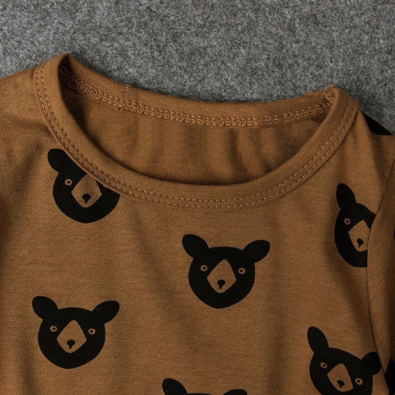 Fashion Girl Bear Print Long Sleeve Round Neck Top And Pants Set