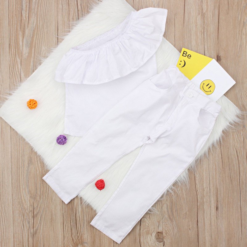 Fashion Girl One-Shoulder Ruffled Sleeve Top And Trousers Set