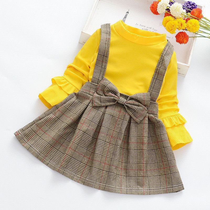 Fashion Girl Patchwork Plaid Print Dress
