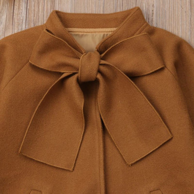Fashion Girl Solid Color Bowknot Single Breasted Coat