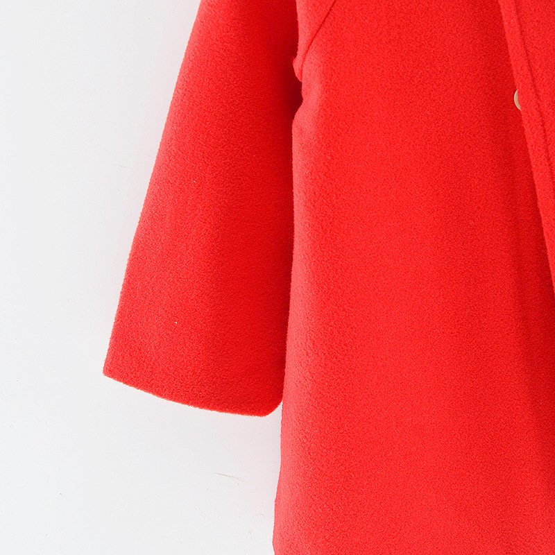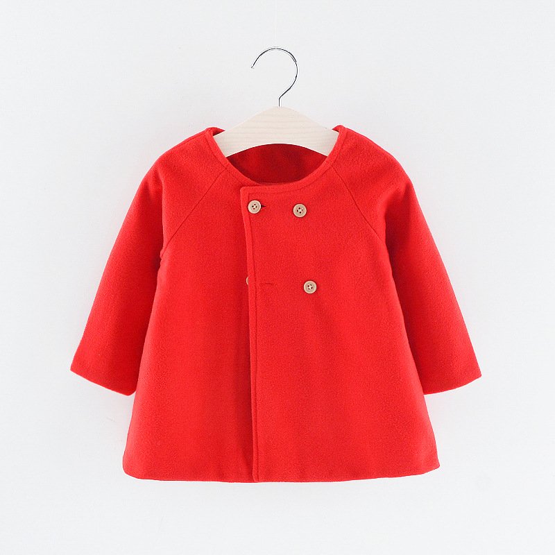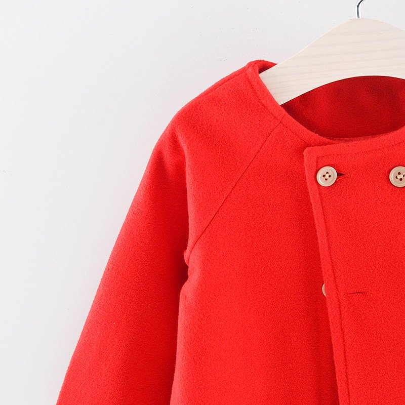 Fashion Girl Solid Color Double-Breasted Round Neck Long Sleeve Coat