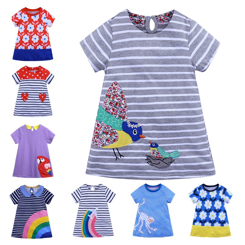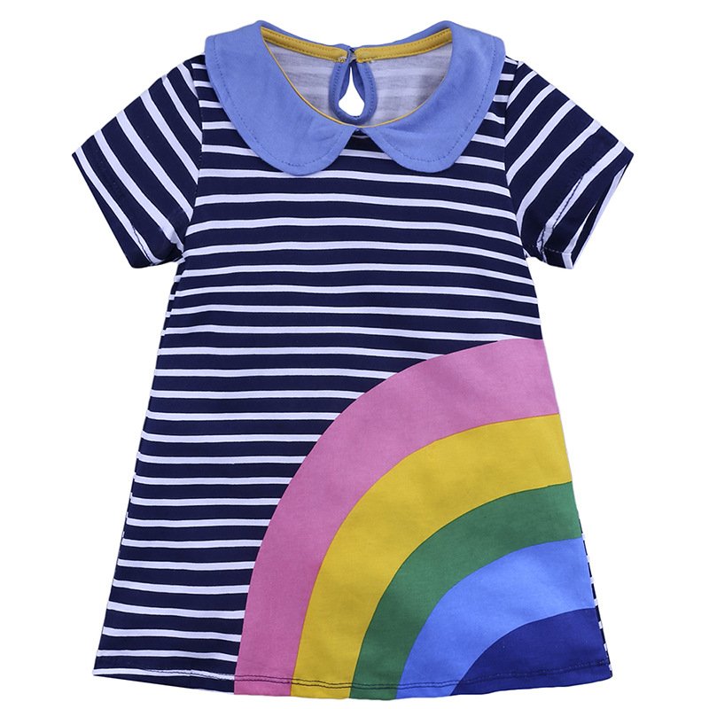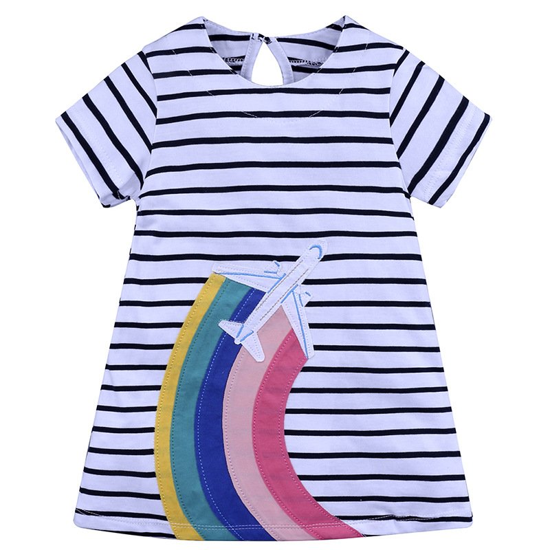 Fashion Girl Striped Short Sleeve Round Neck Dress
