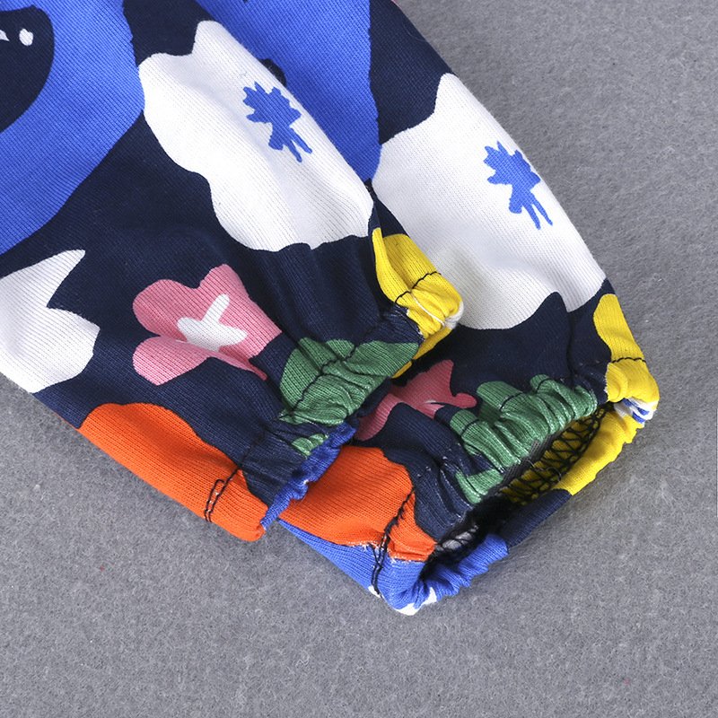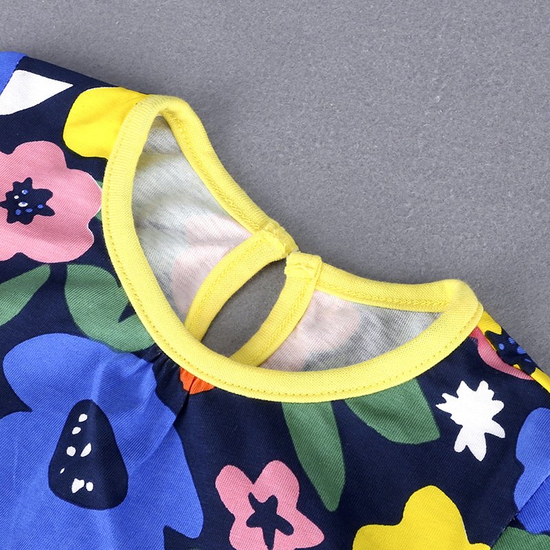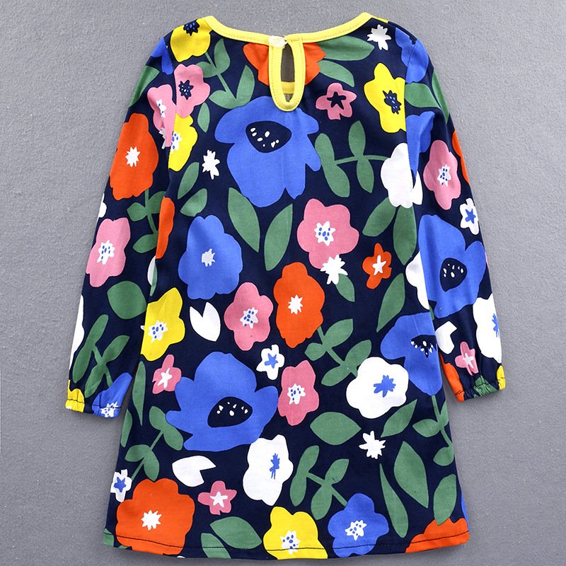 Fashion Girls Flower Pattern Long Sleeve Round Neck Dress
