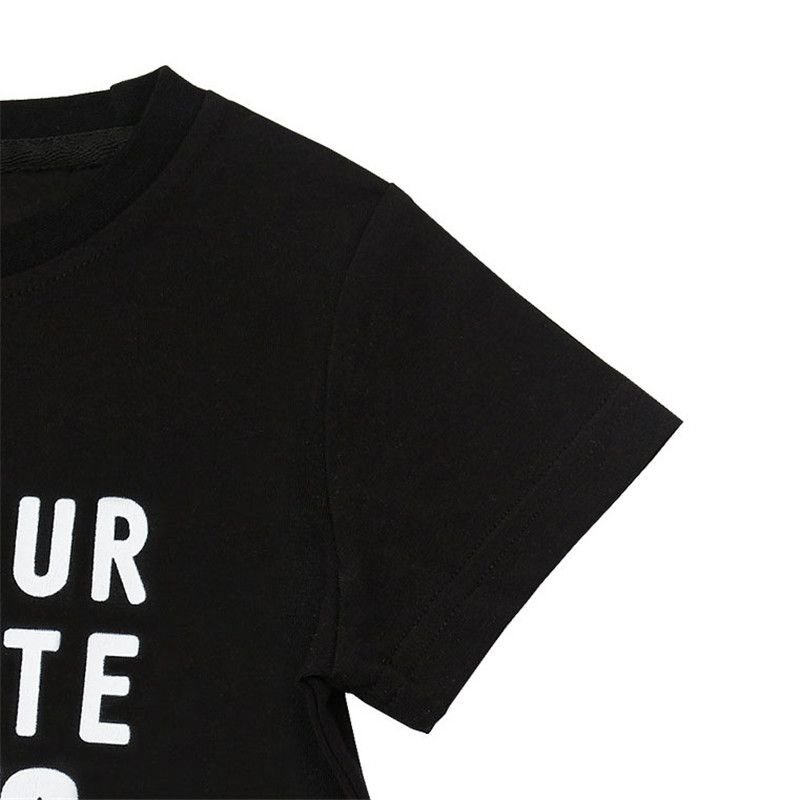 Fashion Kid Girl Boy White Letter Print Black T-Shirt