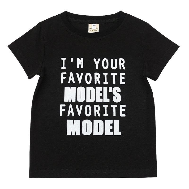 Fashion Kid Girl Boy White Letter Print Black T-Shirt
