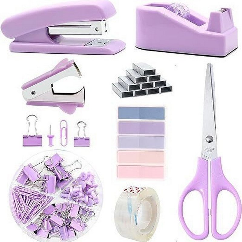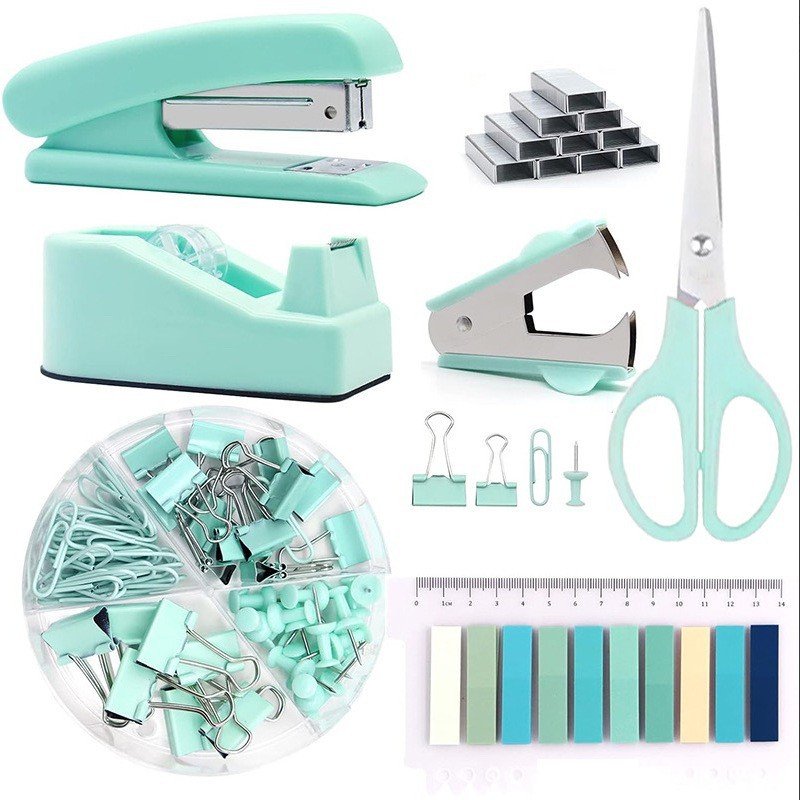 Fashion Simple Solid Color Stapler Tape Holder Scissors Sticky Note Office Stationery Set