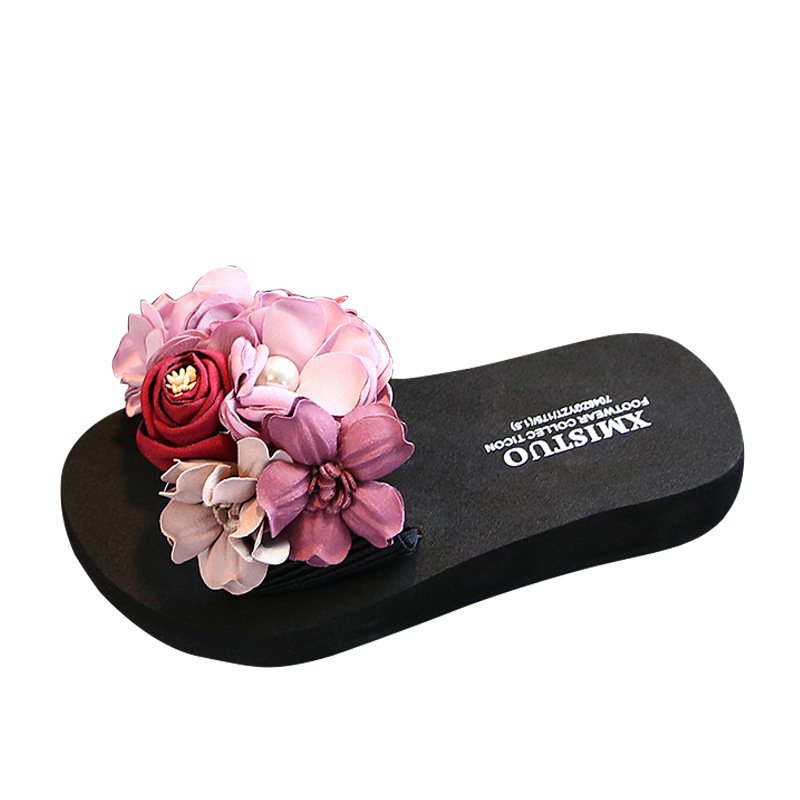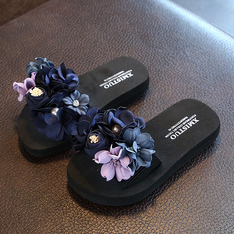 Girl Boho Fabric Flower Decoration Beach Slippers