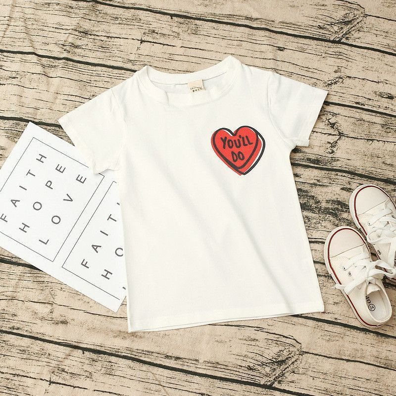 Girl Boy Red Heart Print Short Sleeves T-Shirt