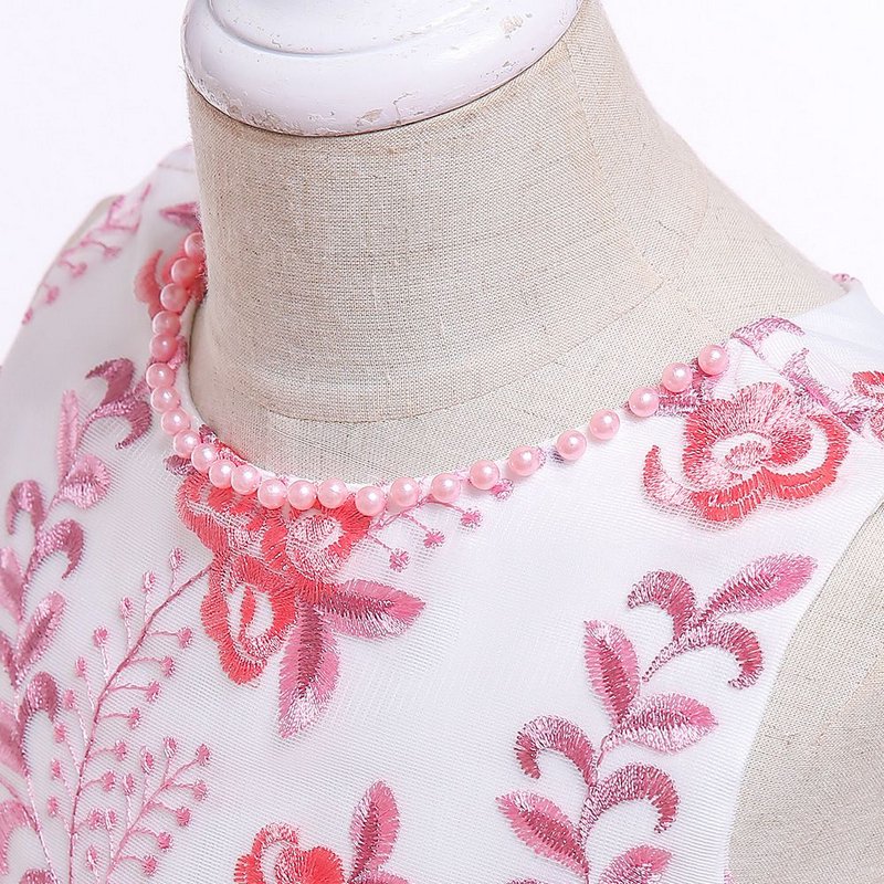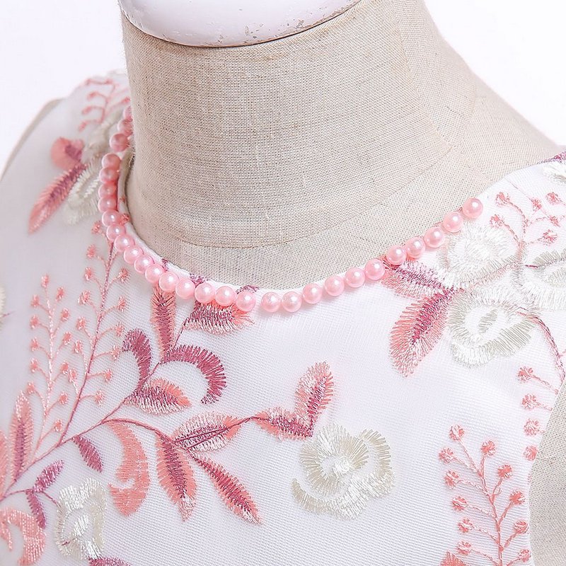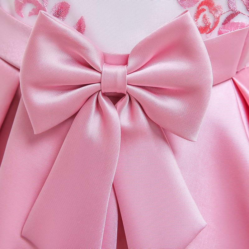 Girl Butterfly Embroidered Sleeveless Bowknot Party Dress