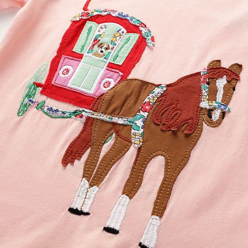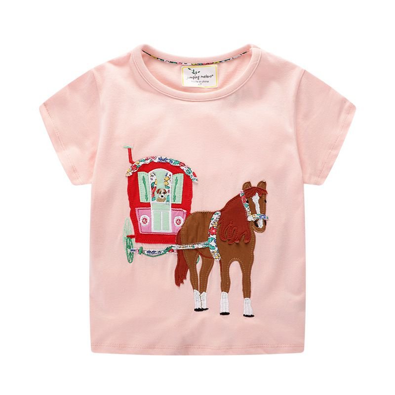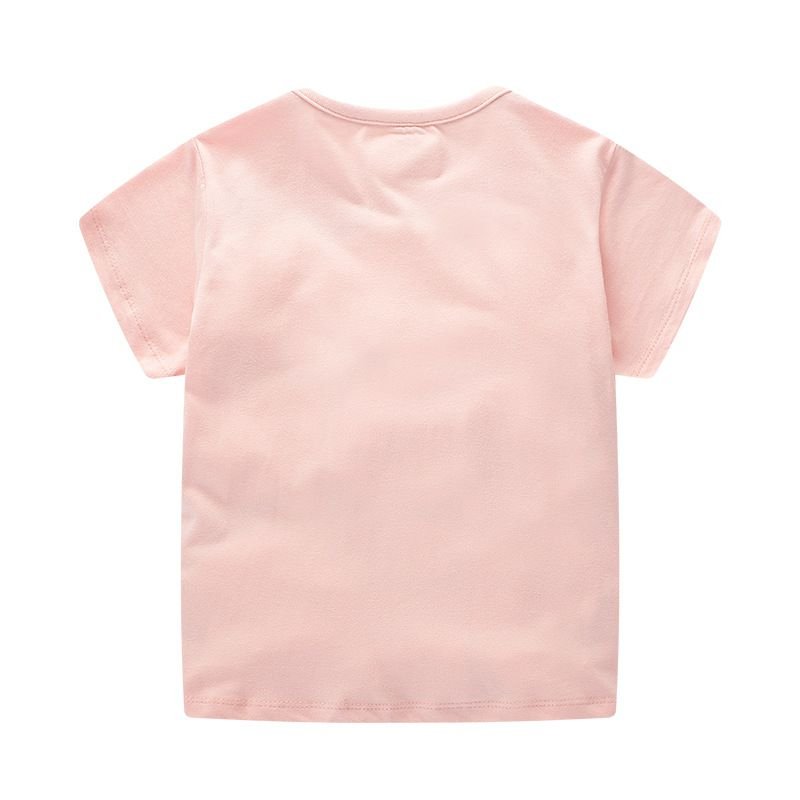 Girl Cotton Cartoon Print Solid Color Short Sleeves T-Shirt