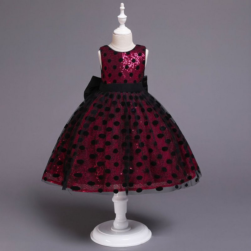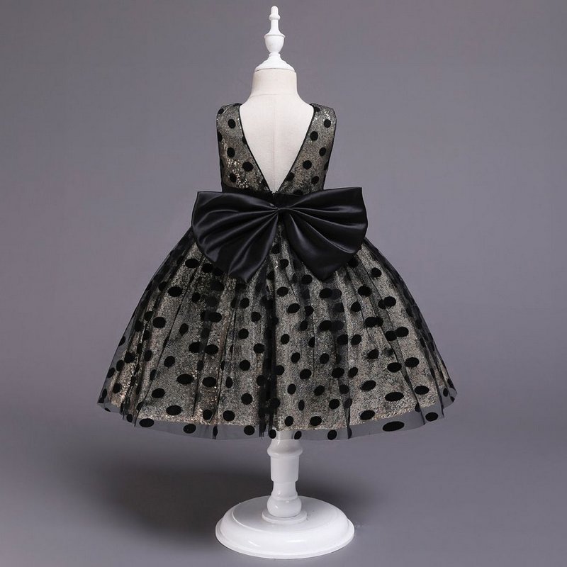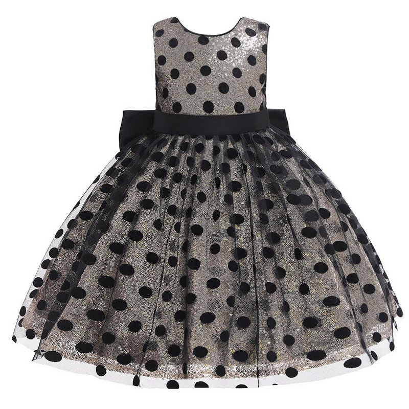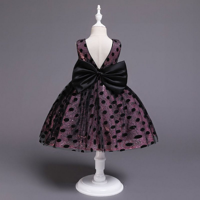 Girl Dot Print Round Neck Bowknot Design Tutu Dress